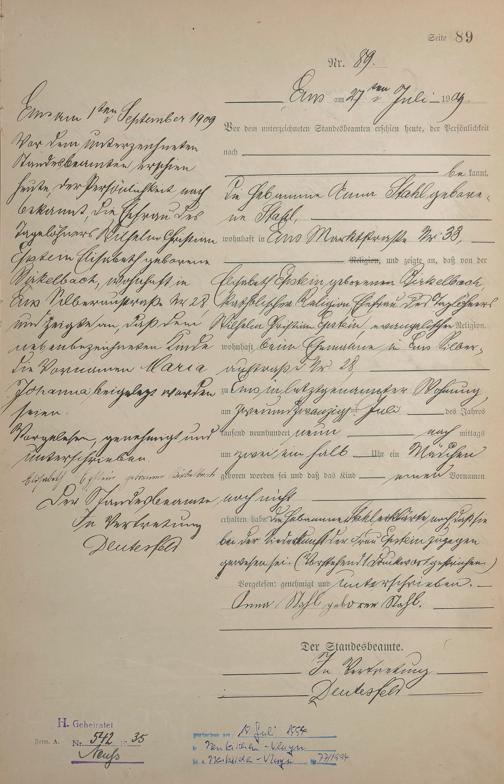 Geburtsregister 1909