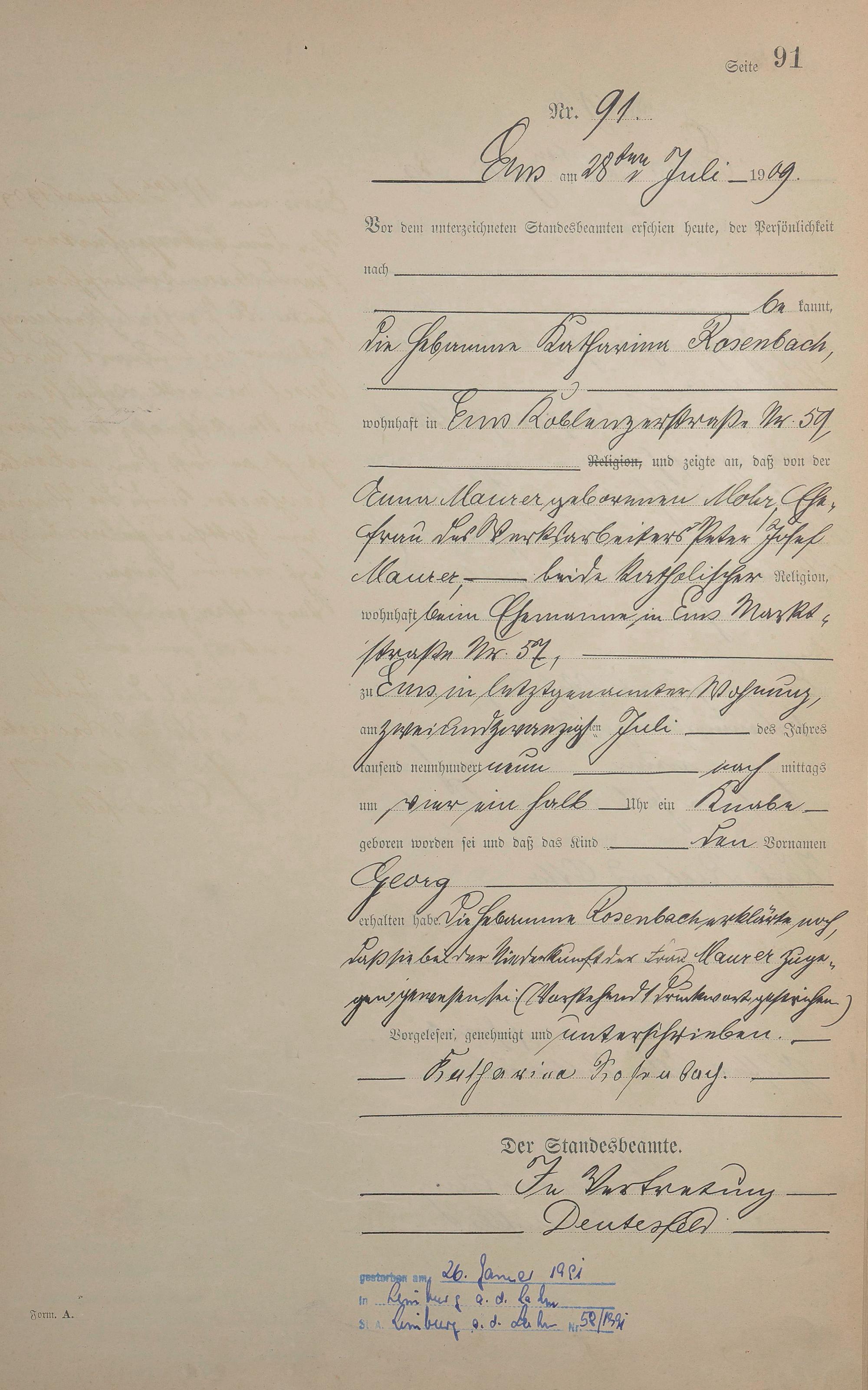 Geburtsregister 1909