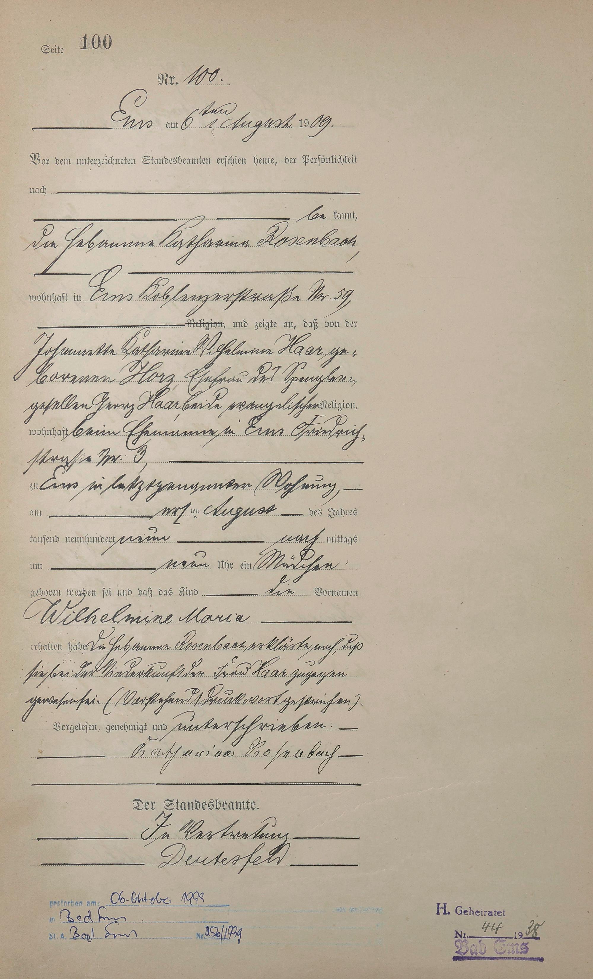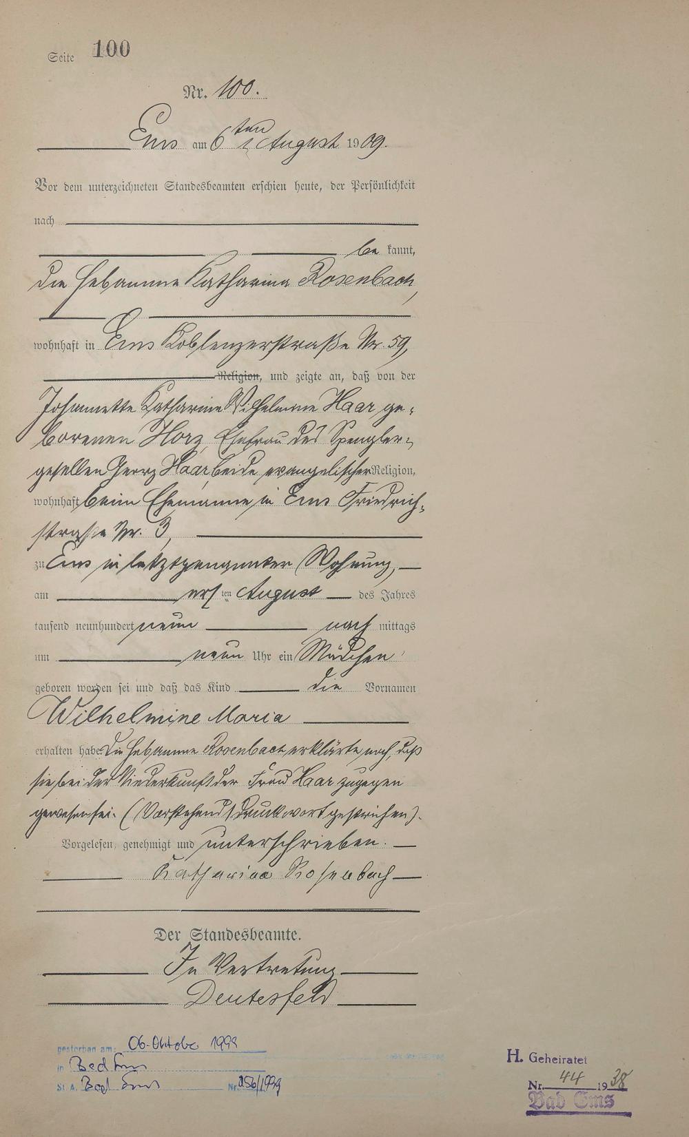 Geburtsregister 1909