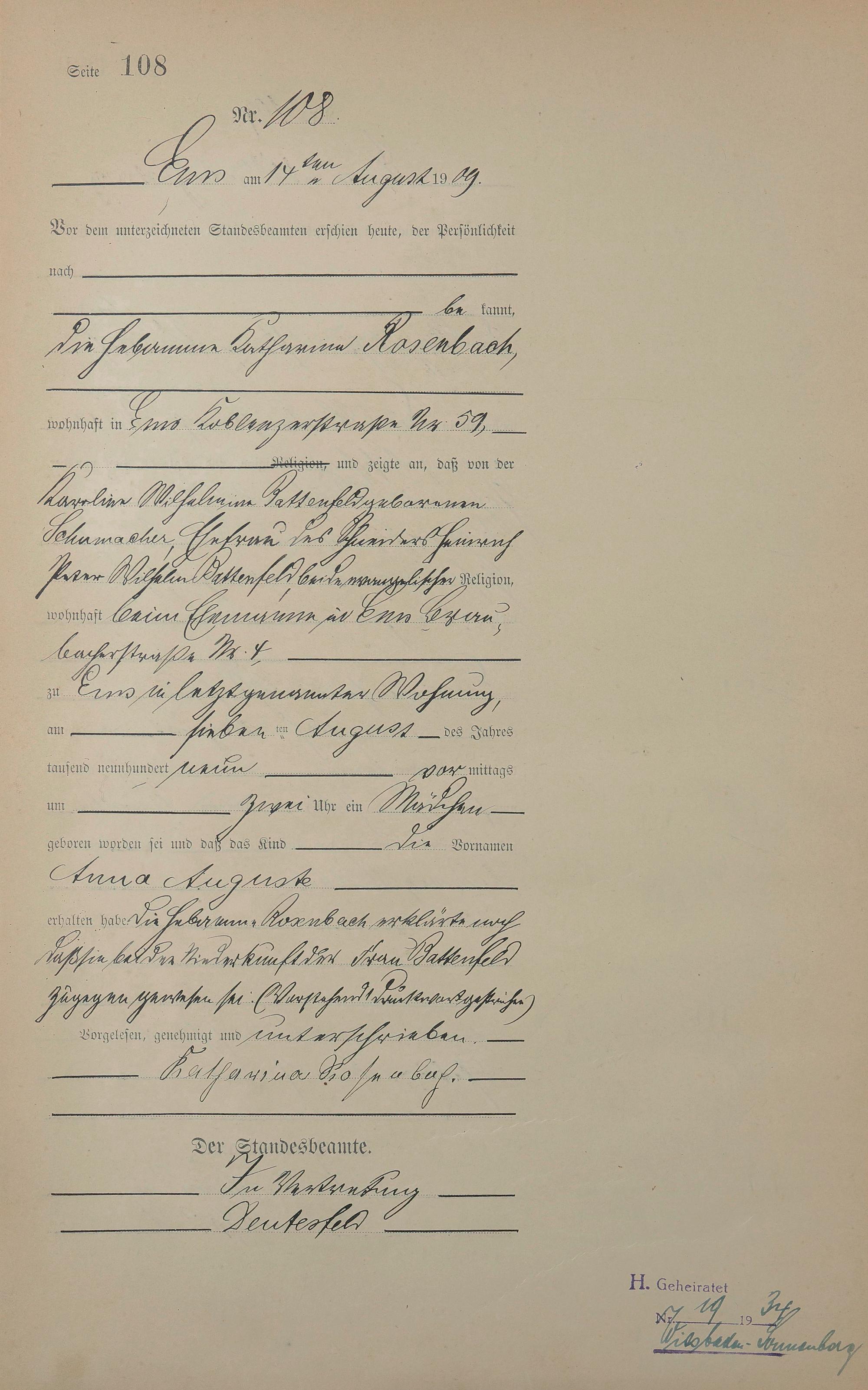 1285: Geburtsregister 1909