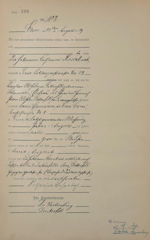 Geburtsregister 1909