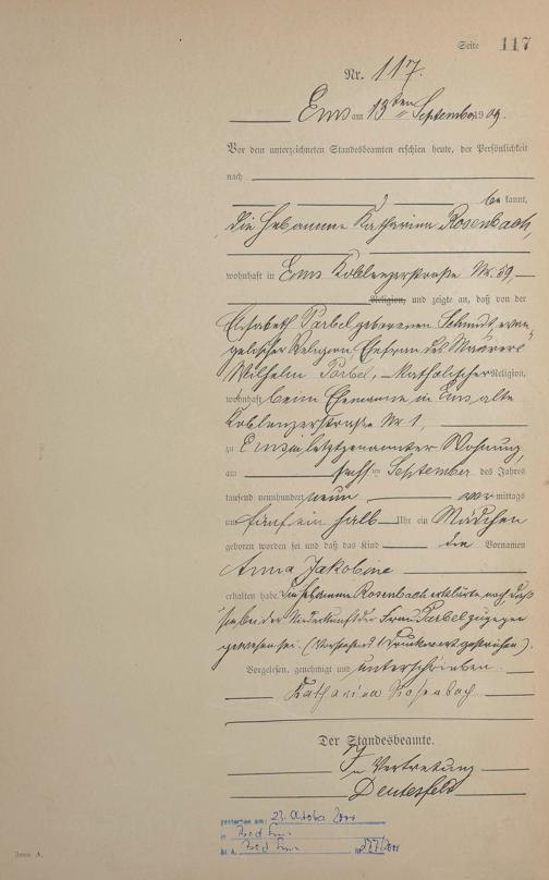 Geburtsregister 1909