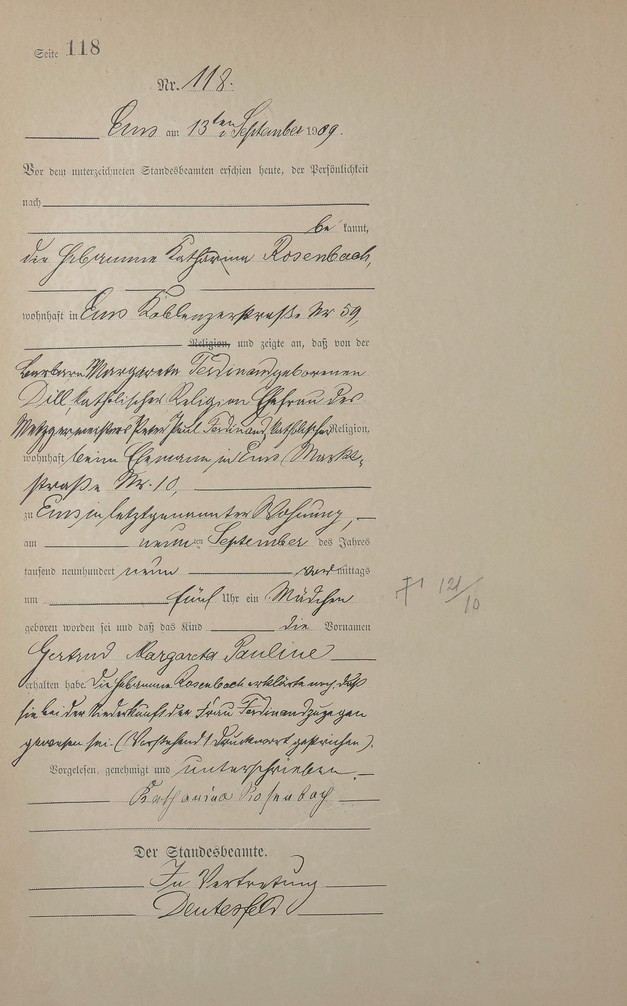 1285: Geburtsregister 1909