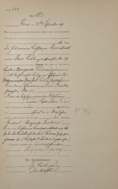 Geburtsregister 1909