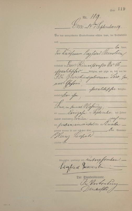 Geburtsregister 1909