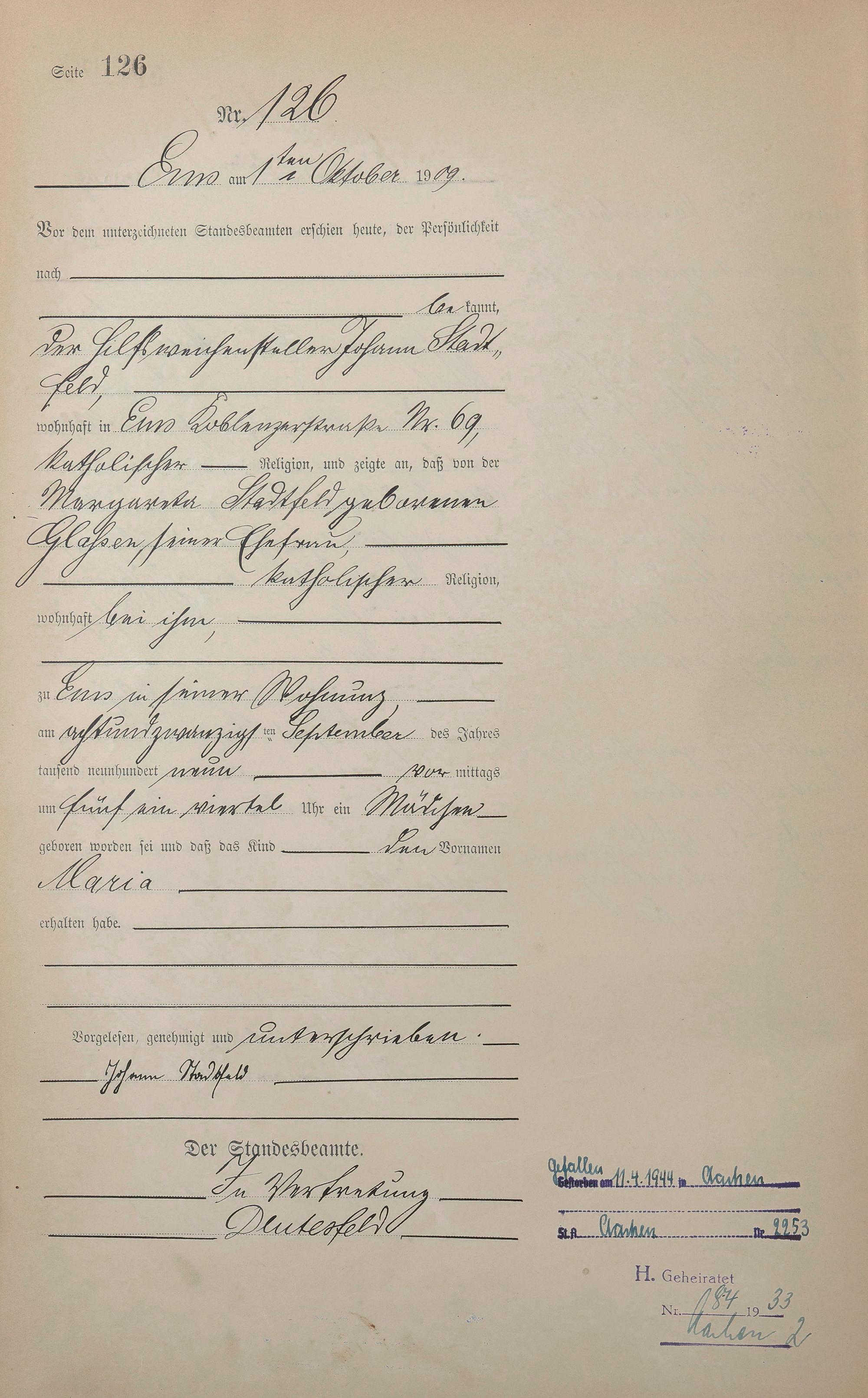 1285: Geburtsregister 1909