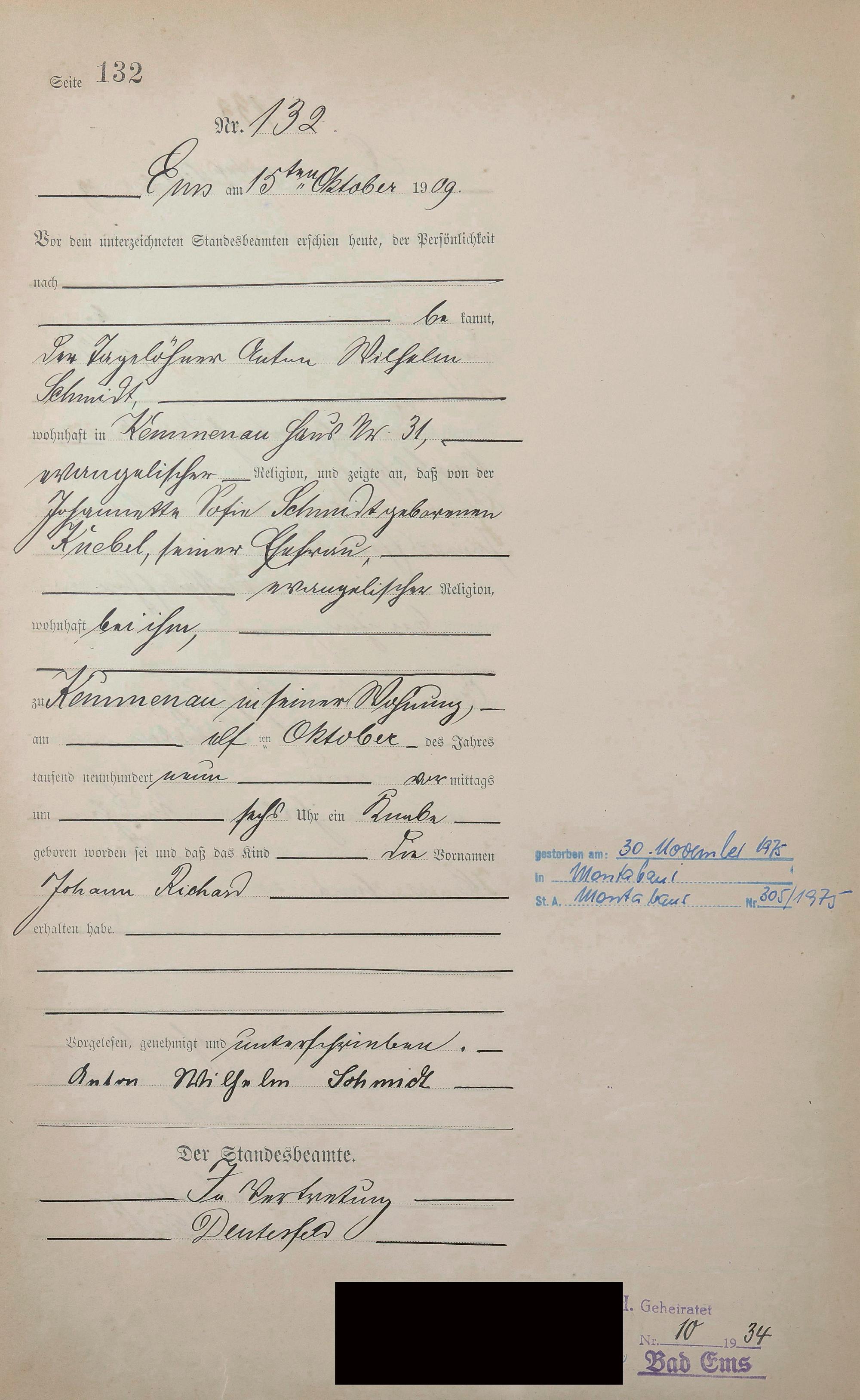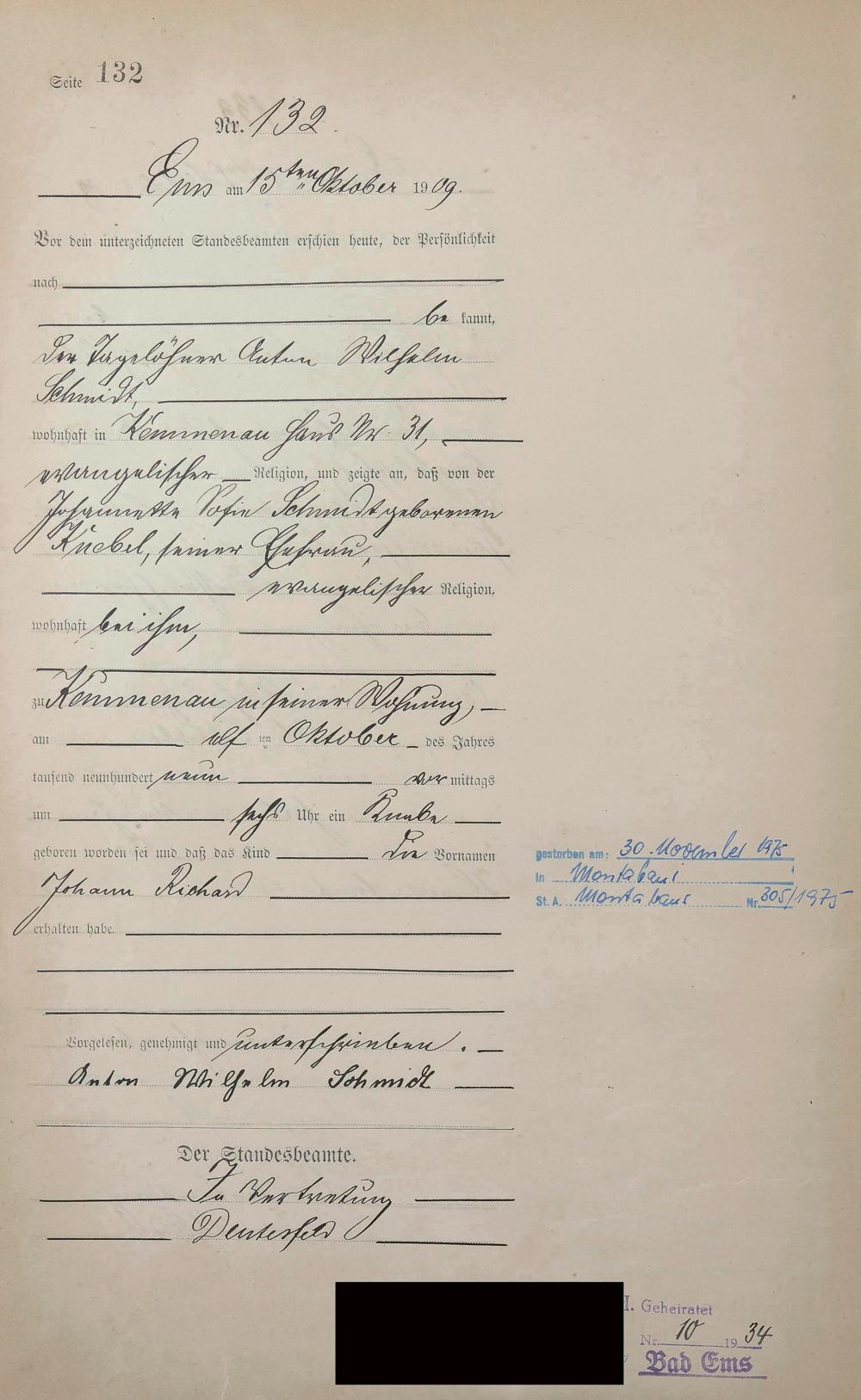 Geburtsregister 1909