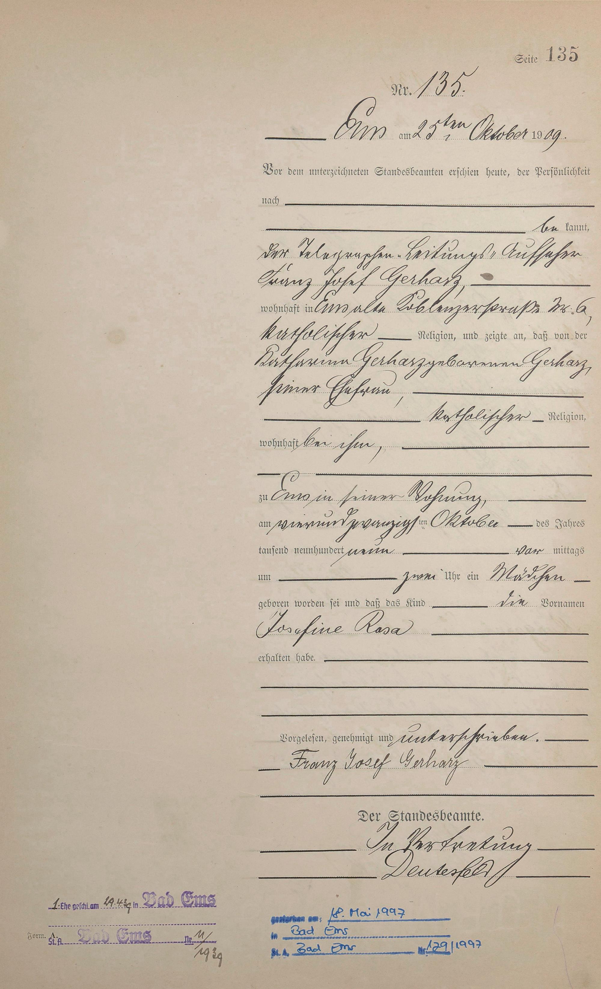 1285: Geburtsregister 1909
