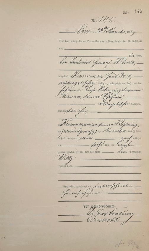Geburtsregister 1909