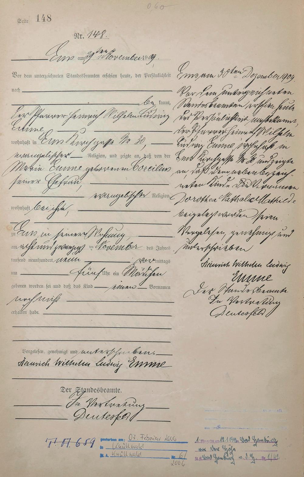 Geburtsregister 1909
