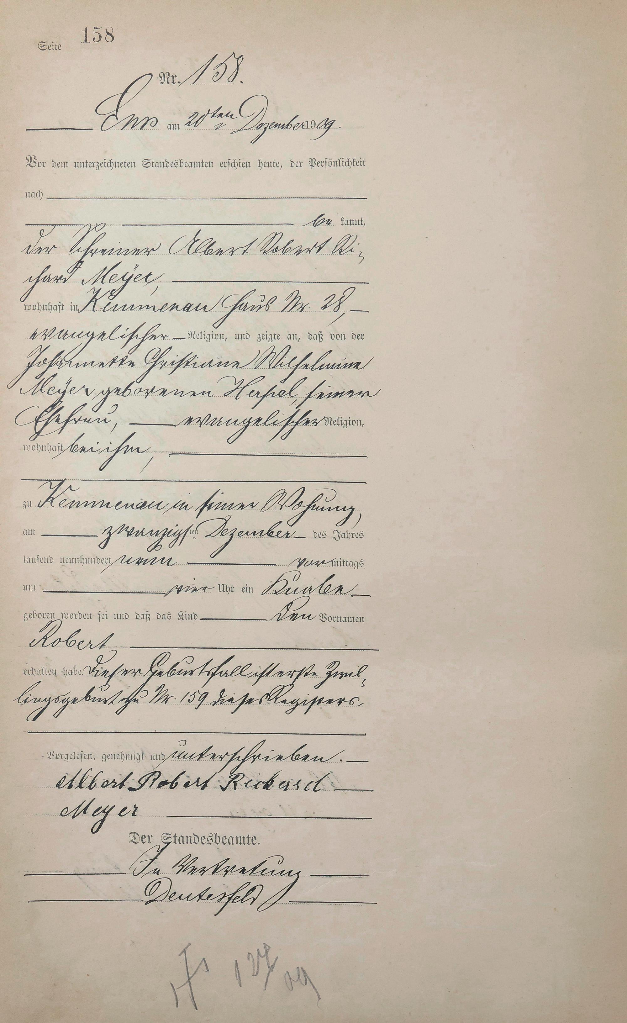 Geburtsregister 1909