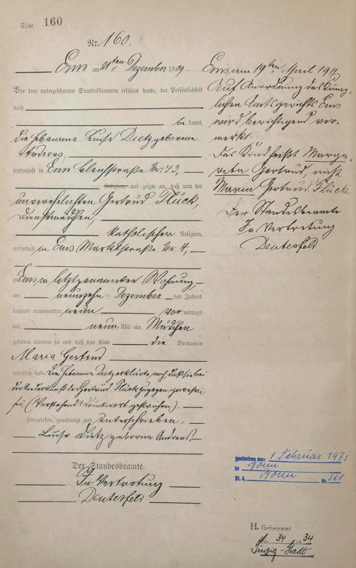 Geburtsregister 1909