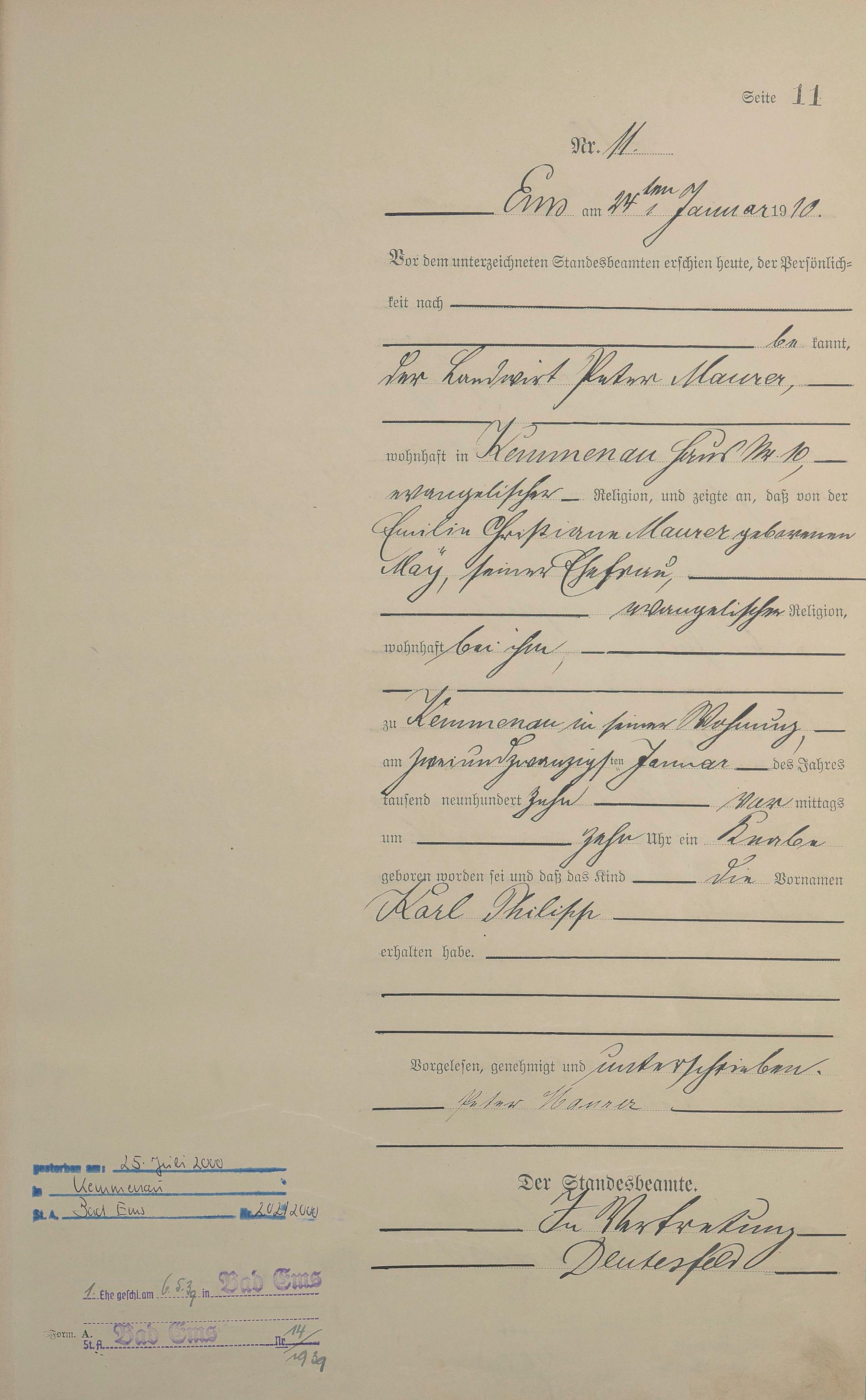 Geburtsregister 1910