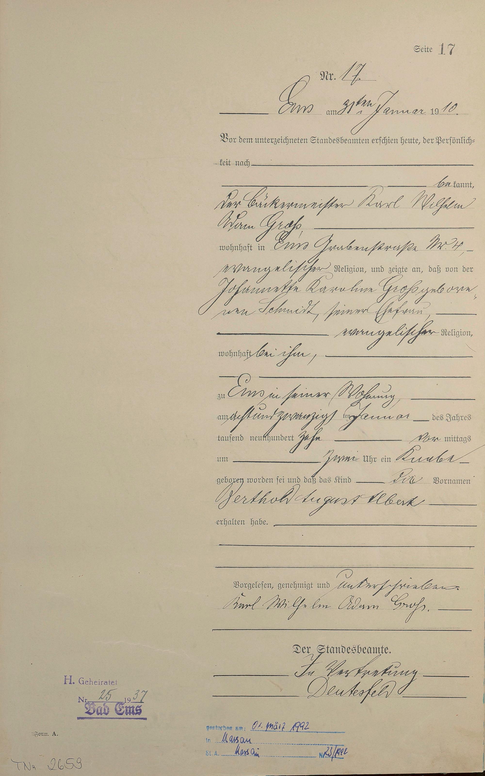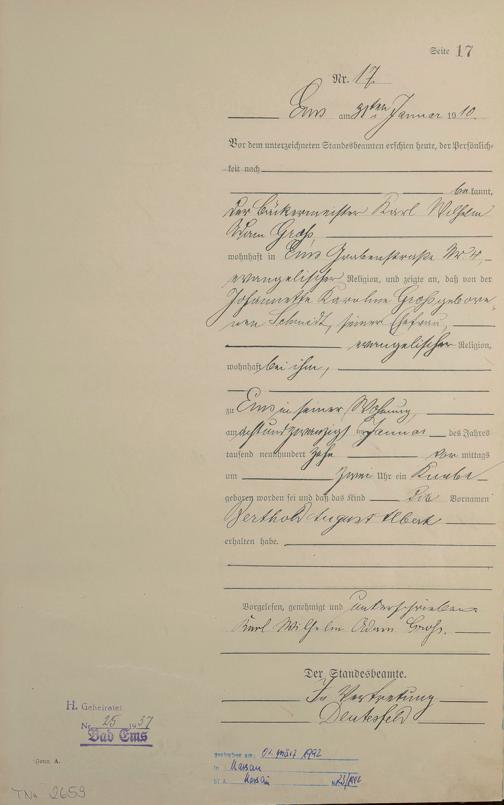 Geburtsregister 1910