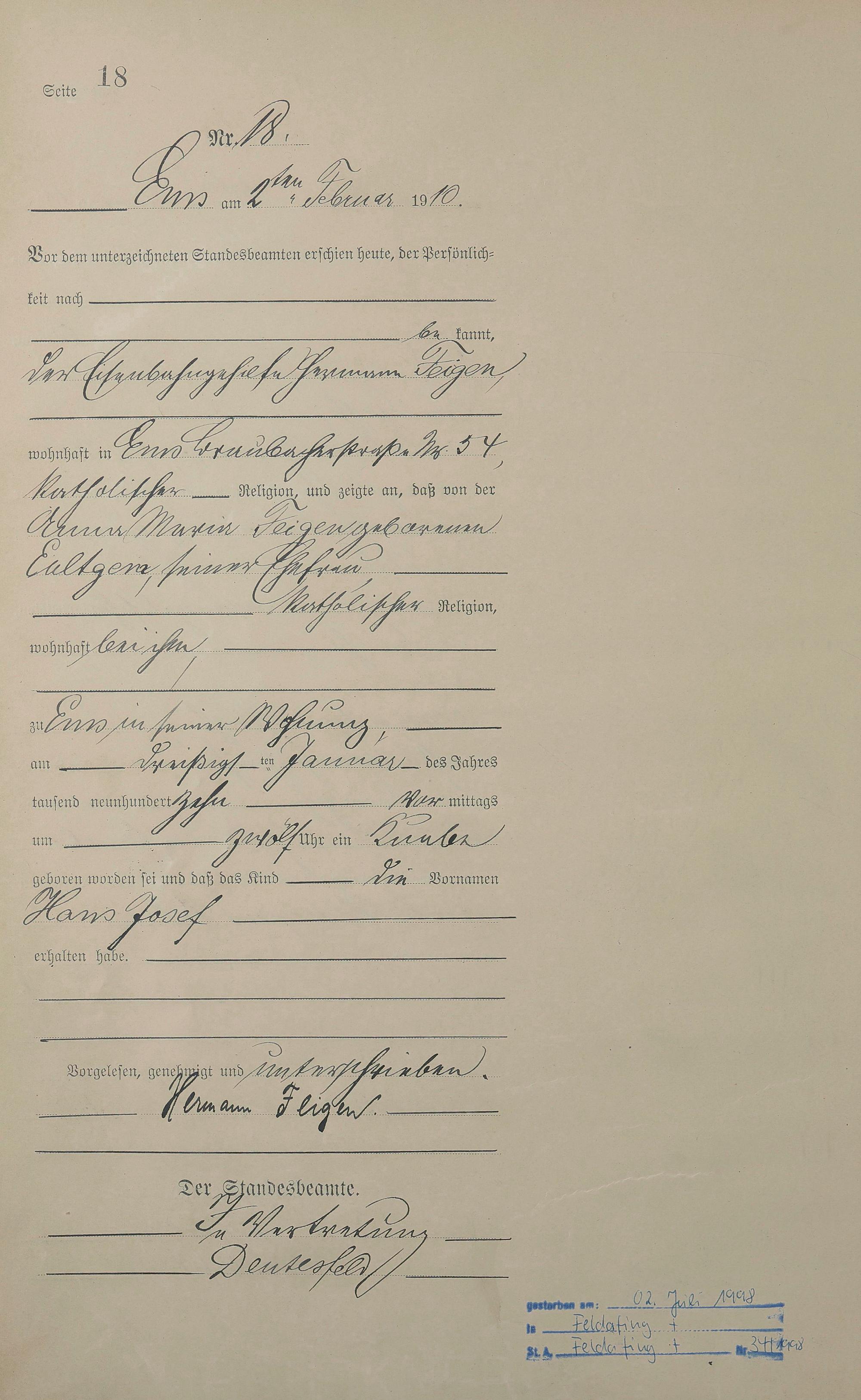 Geburtsregister 1910