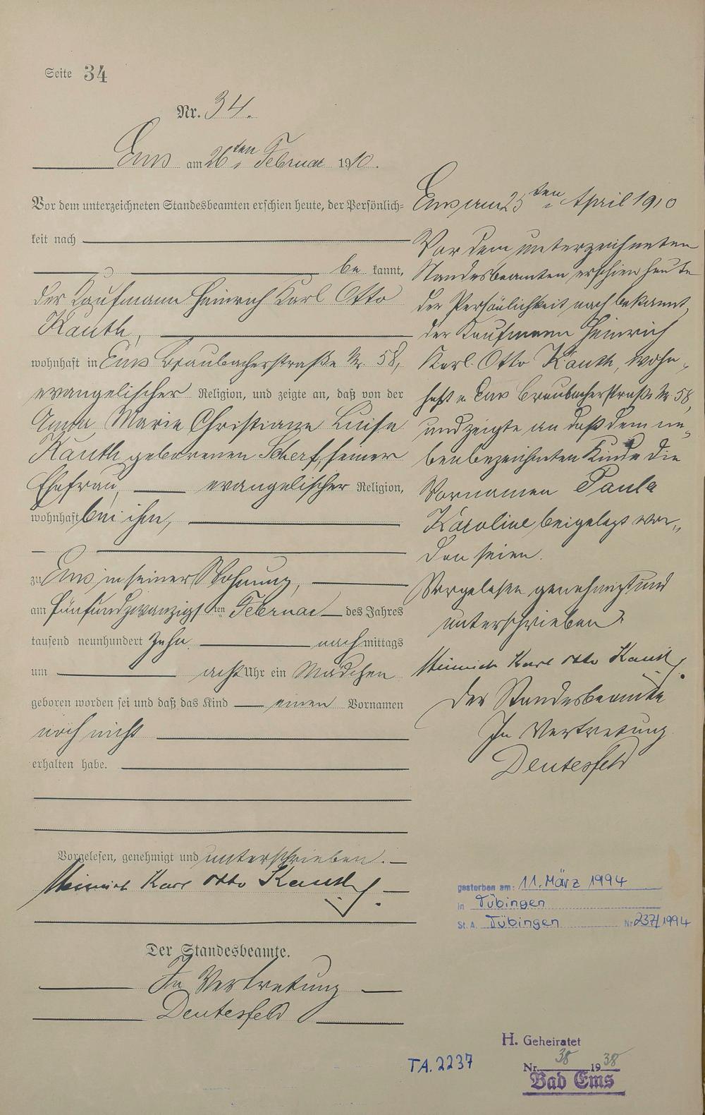 Geburtsregister 1910