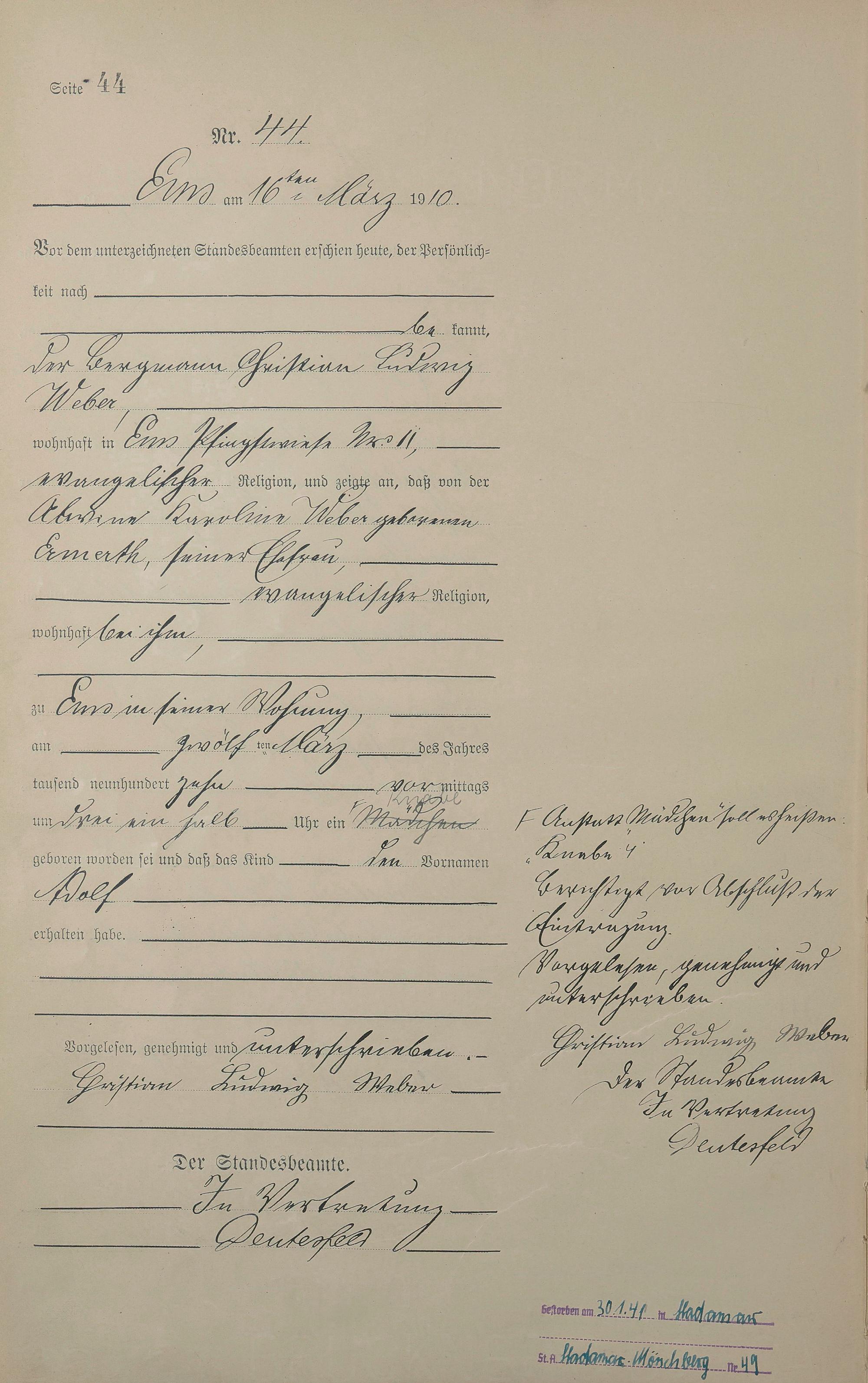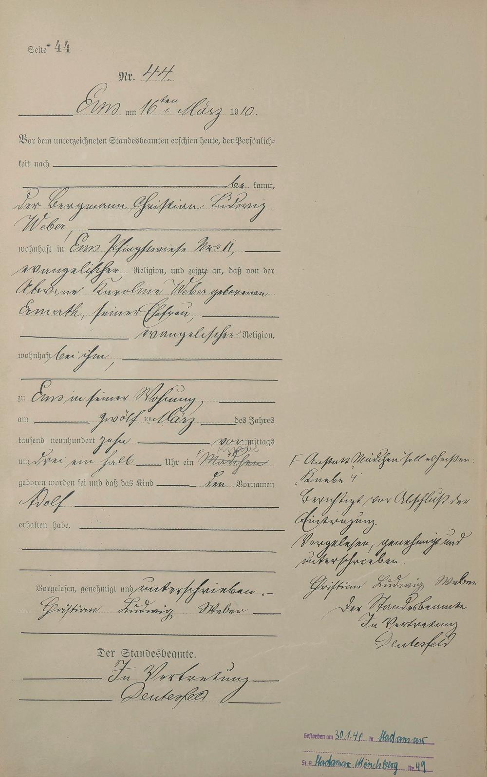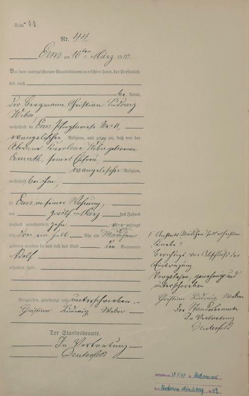 Geburtsregister 1910