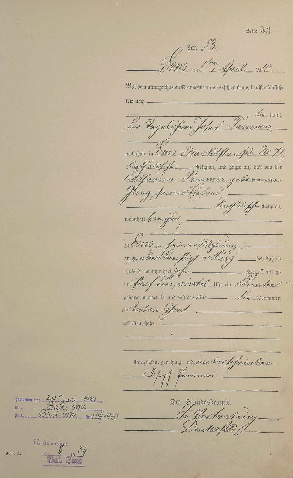 Geburtsregister 1910
