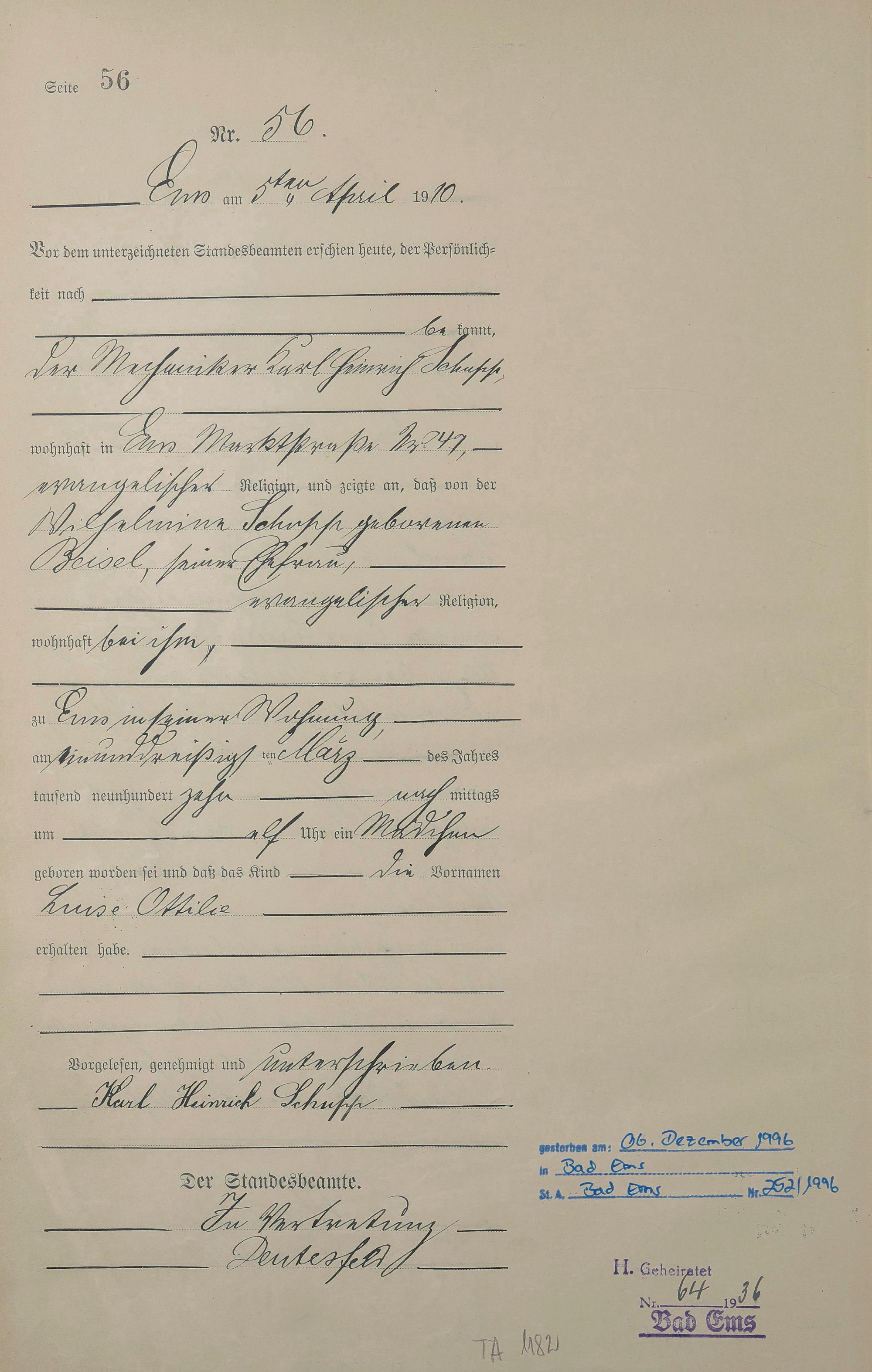 Geburtsregister 1910