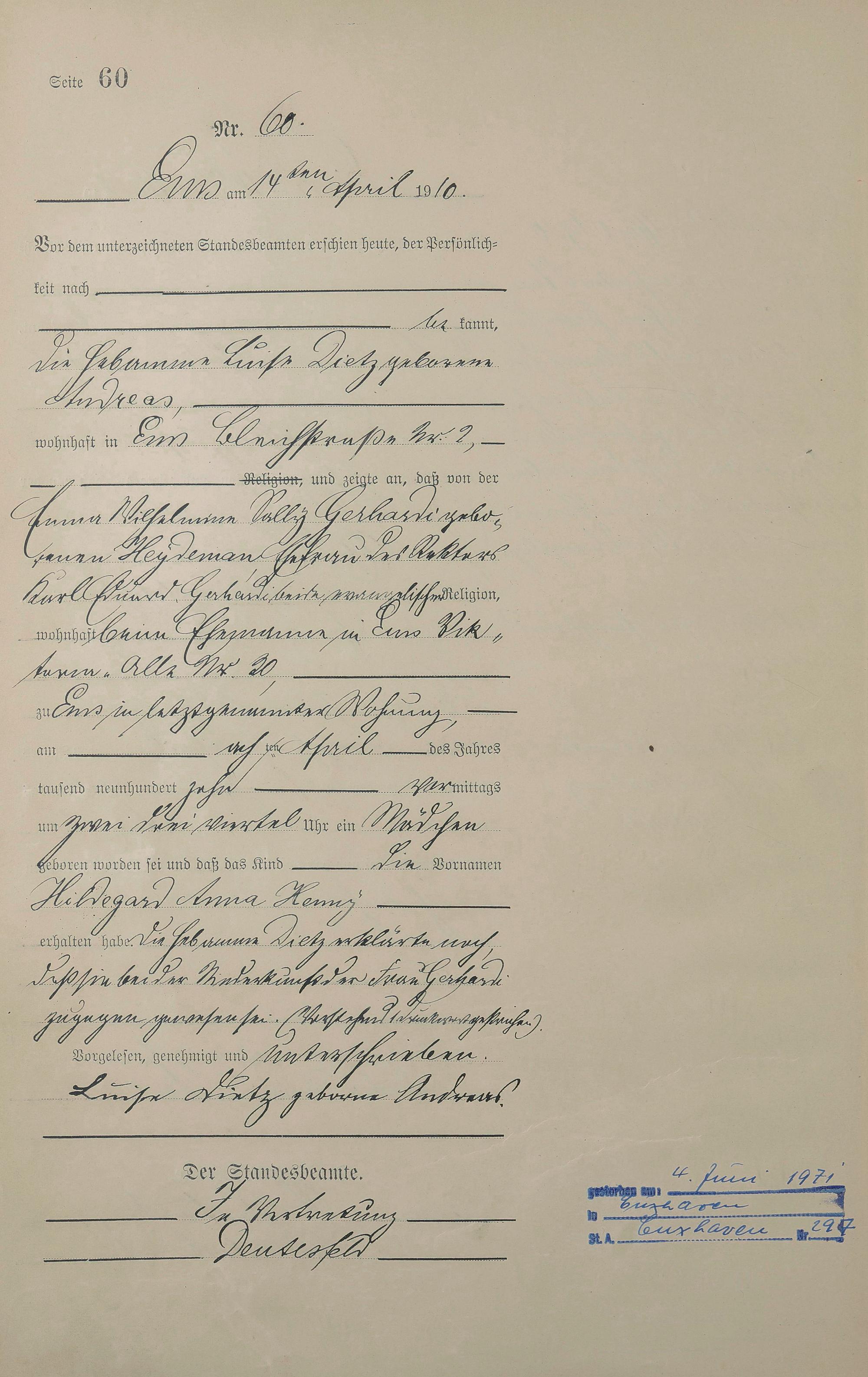 Geburtsregister 1910