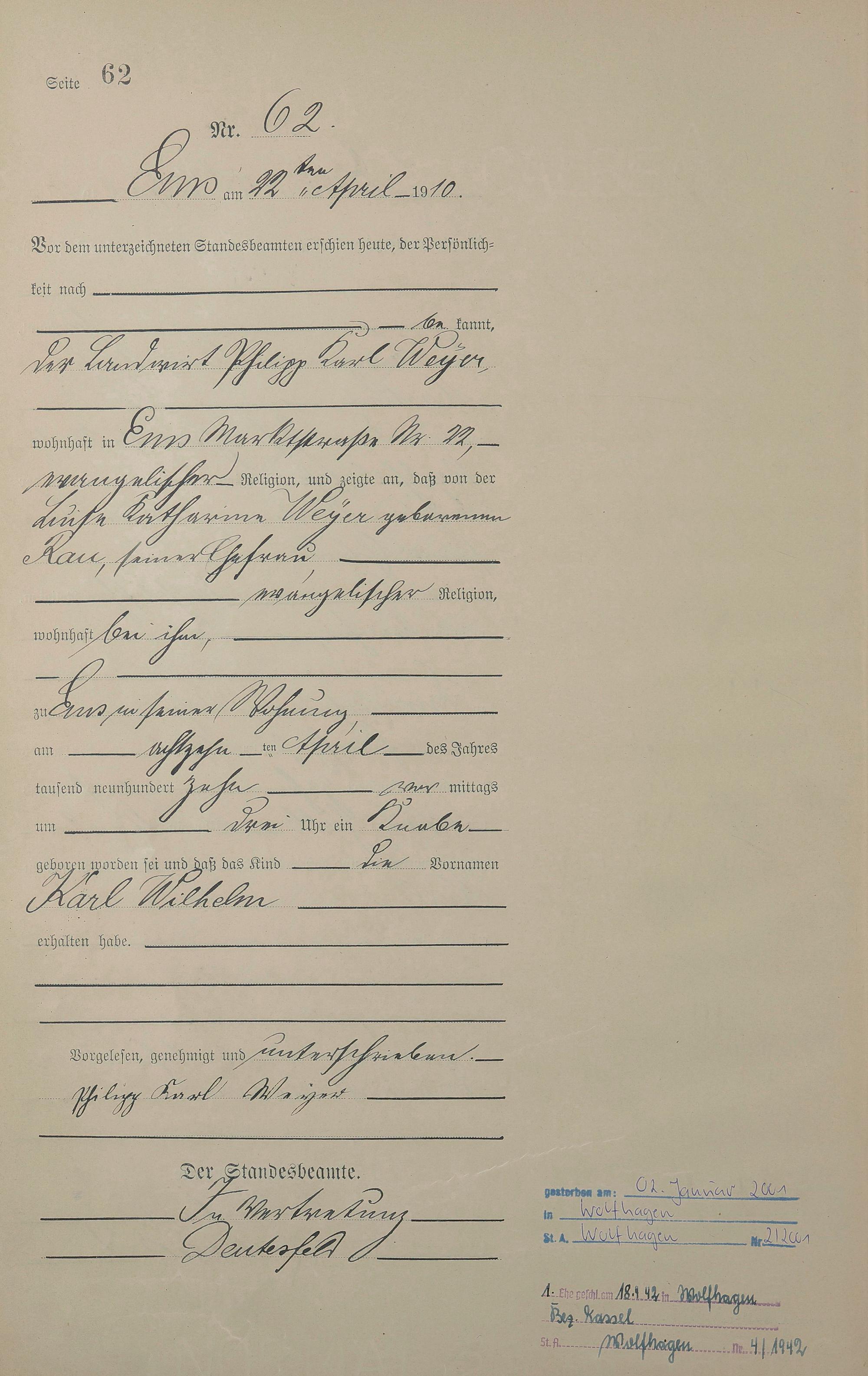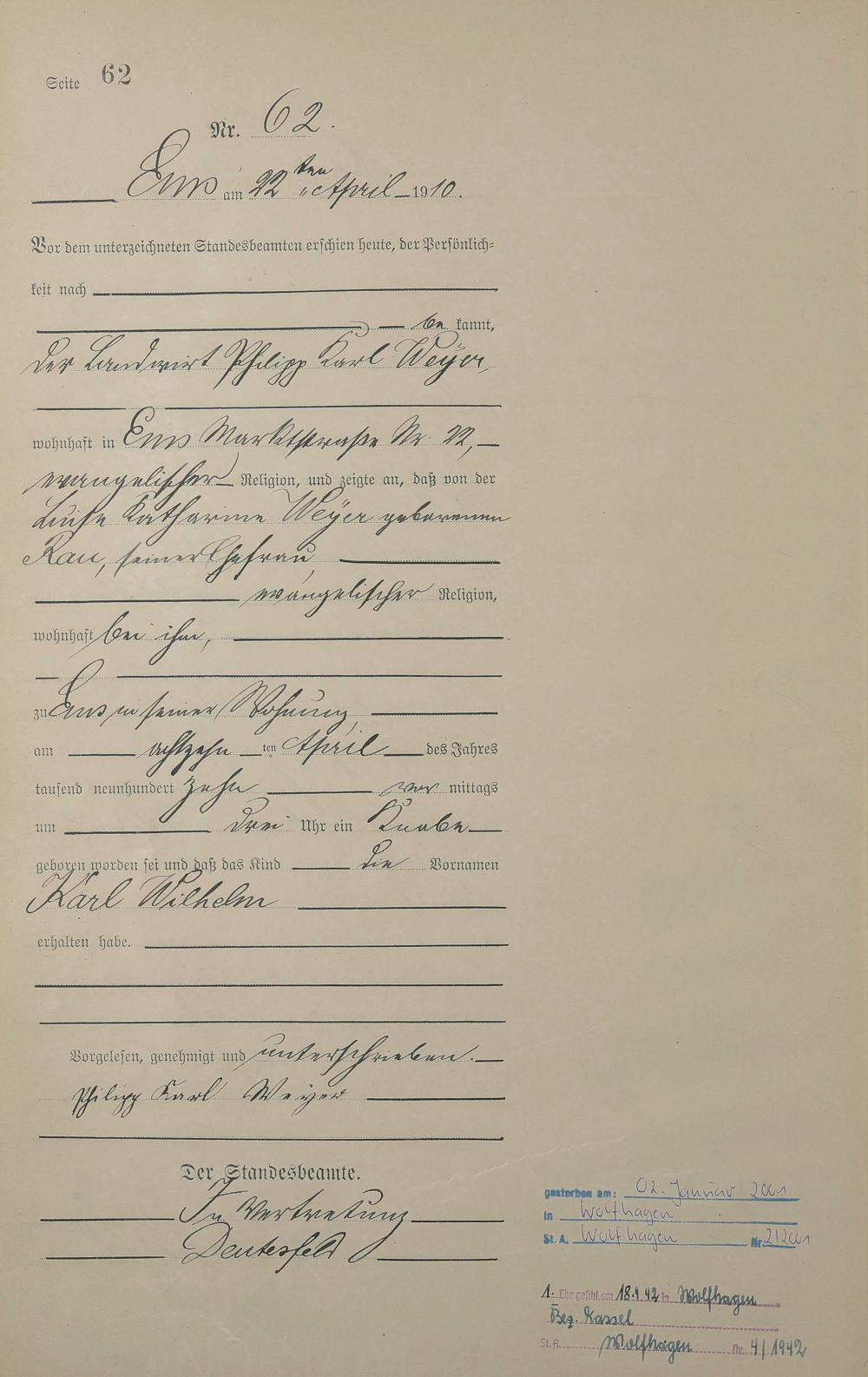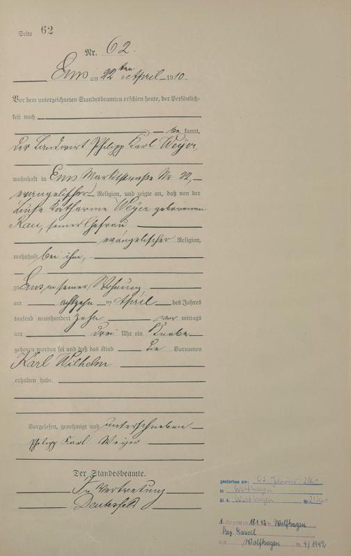 Geburtsregister 1910