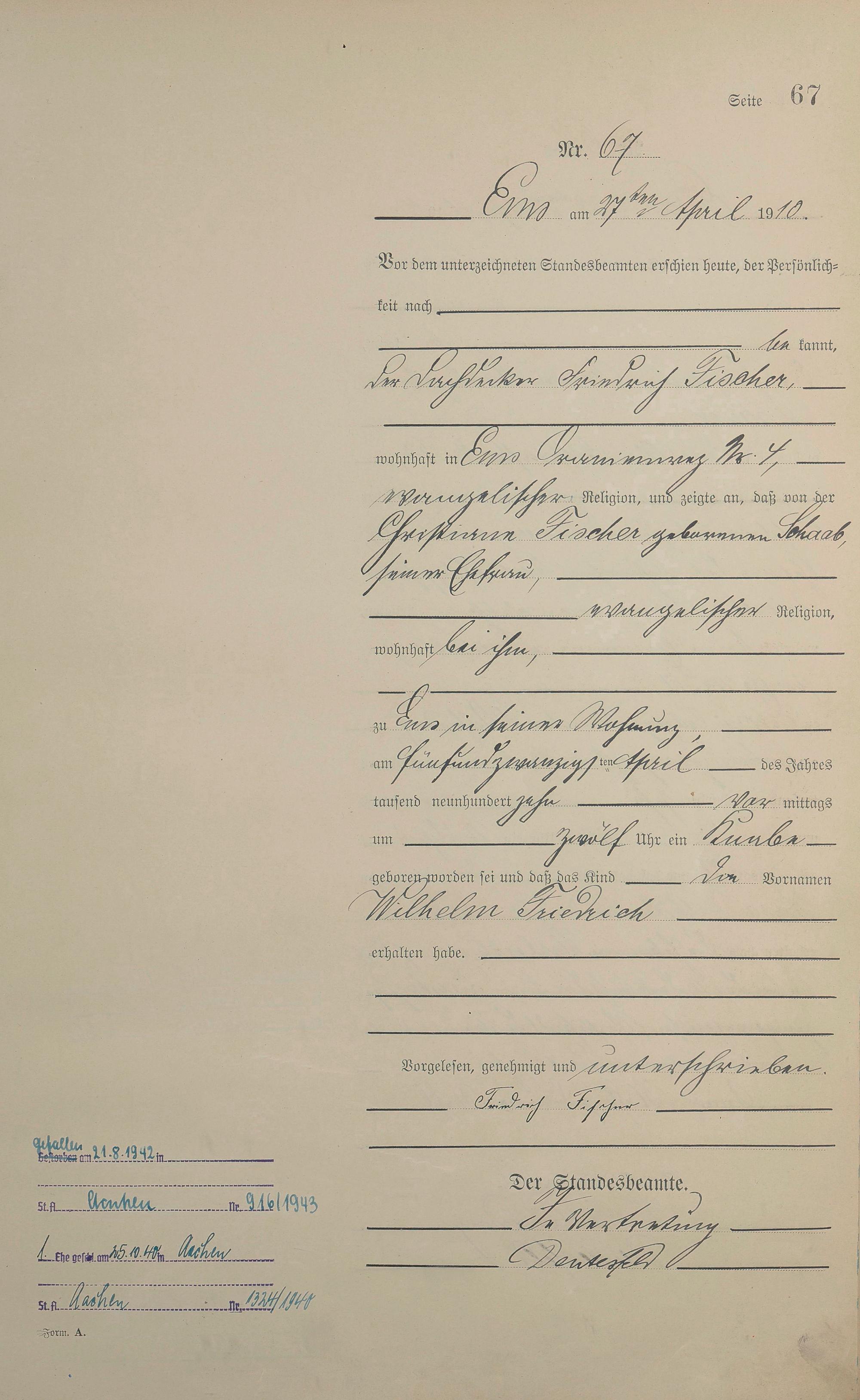 Geburtsregister 1910
