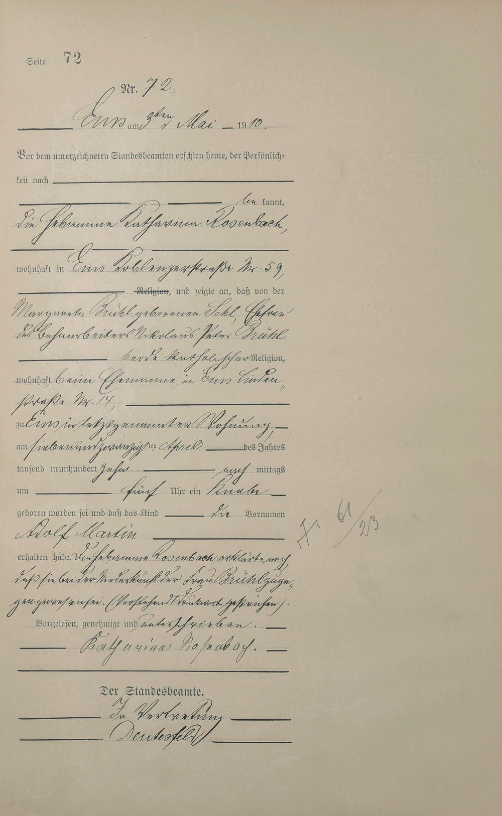 Geburtsregister 1910