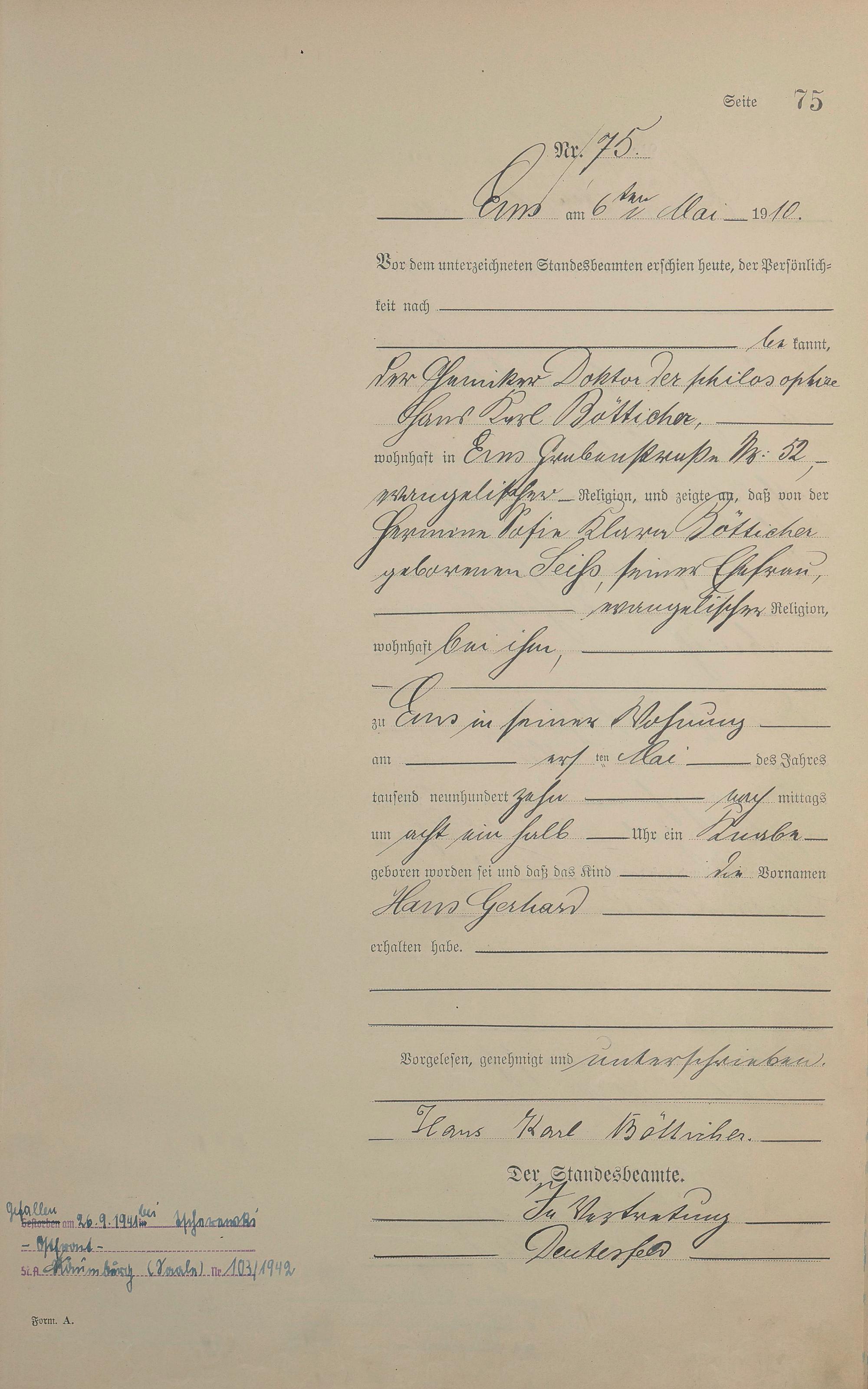 Geburtsregister 1910