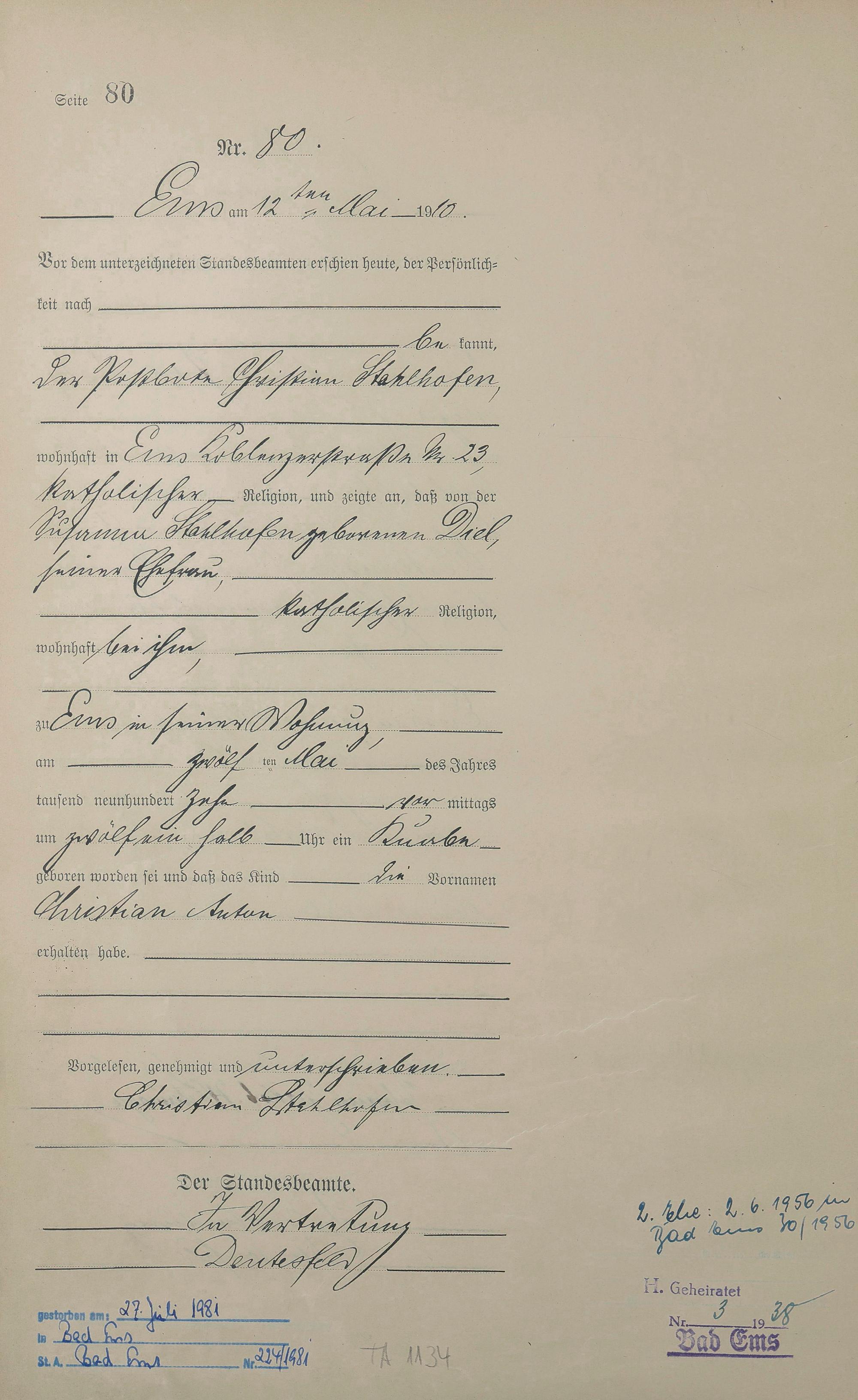 Geburtsregister 1910