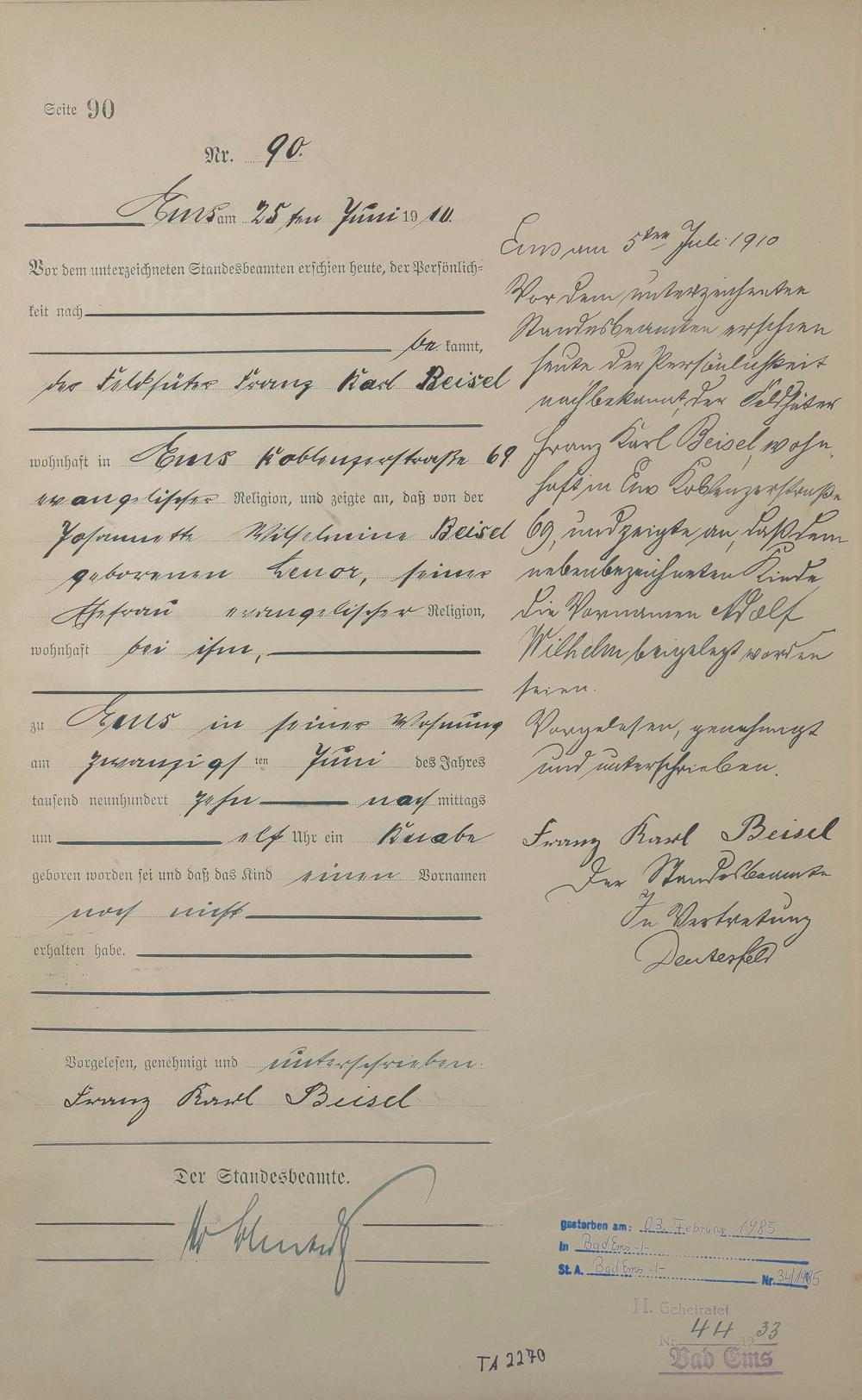 Geburtsregister 1910