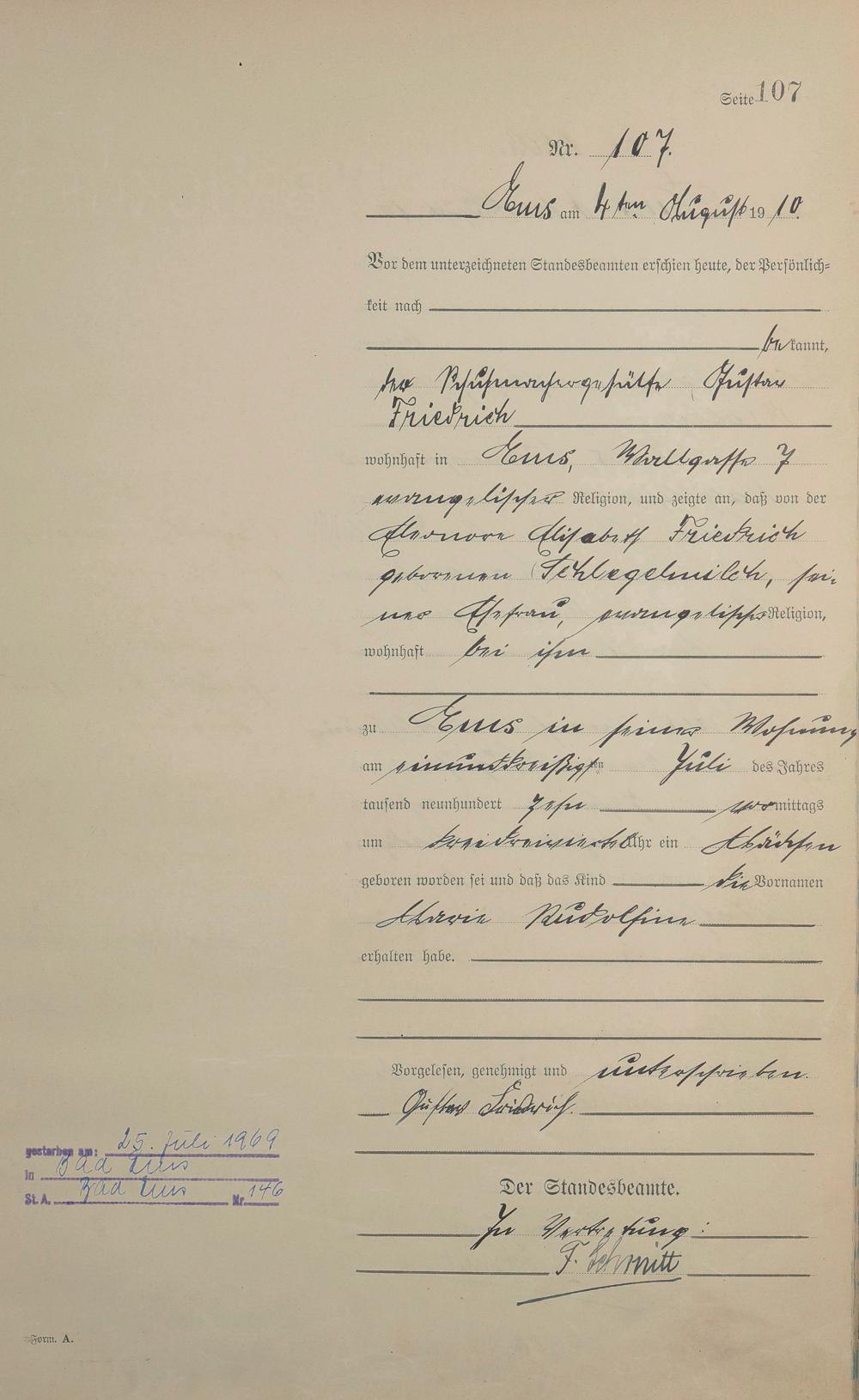 Geburtsregister 1910