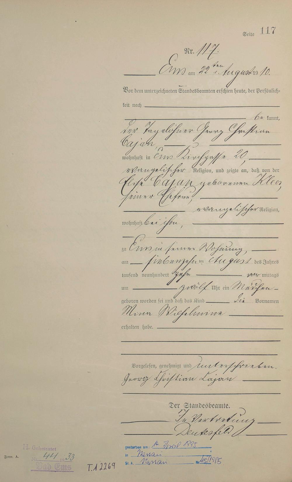 Geburtsregister 1910