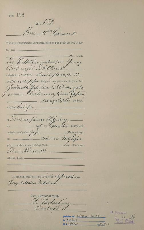 Geburtsregister 1910