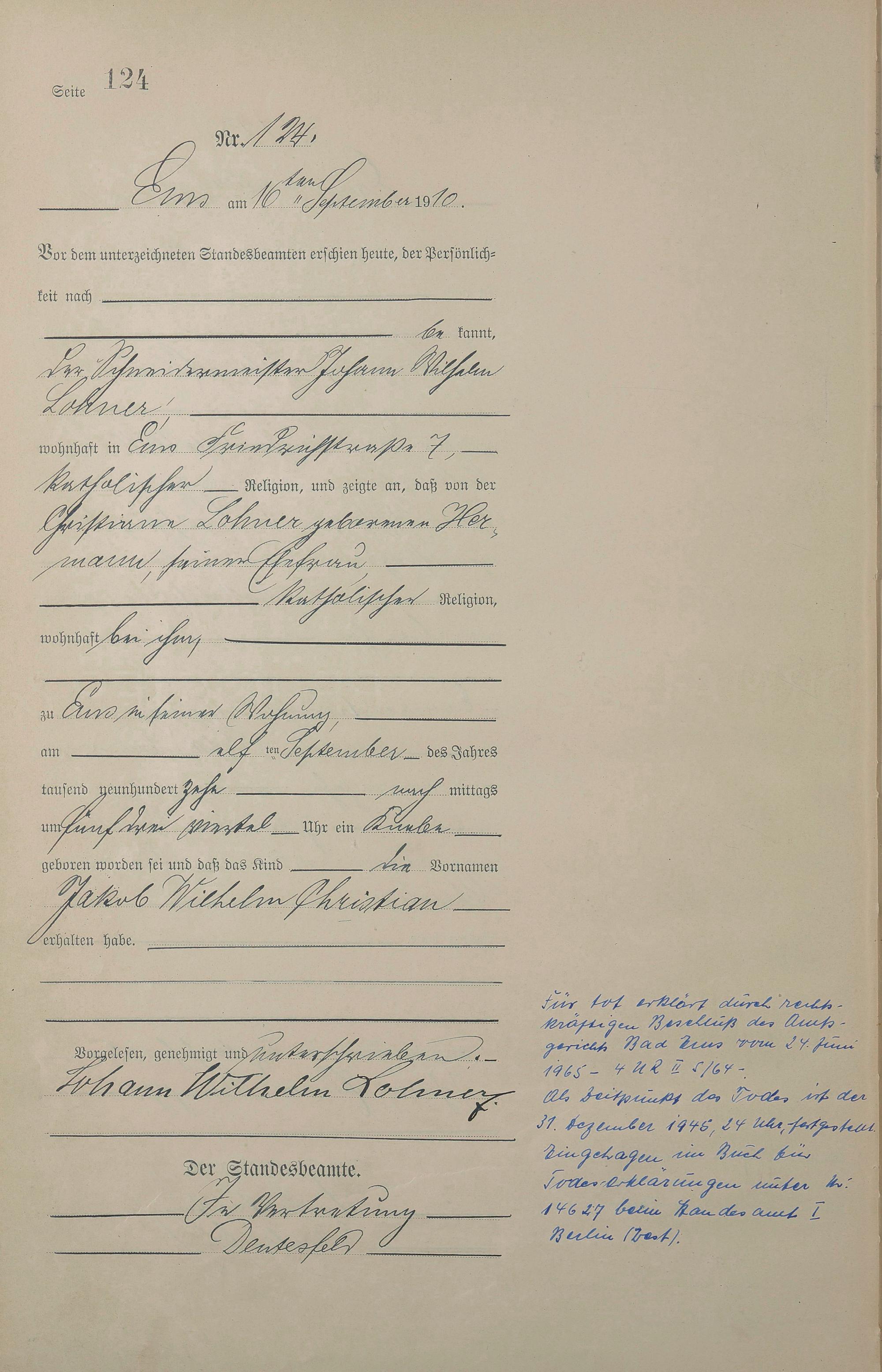 Geburtsregister 1910