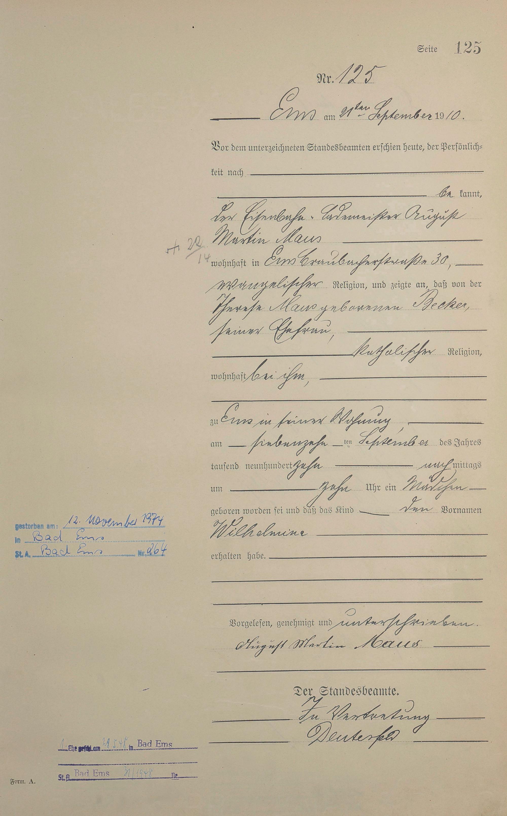 Geburtsregister 1910