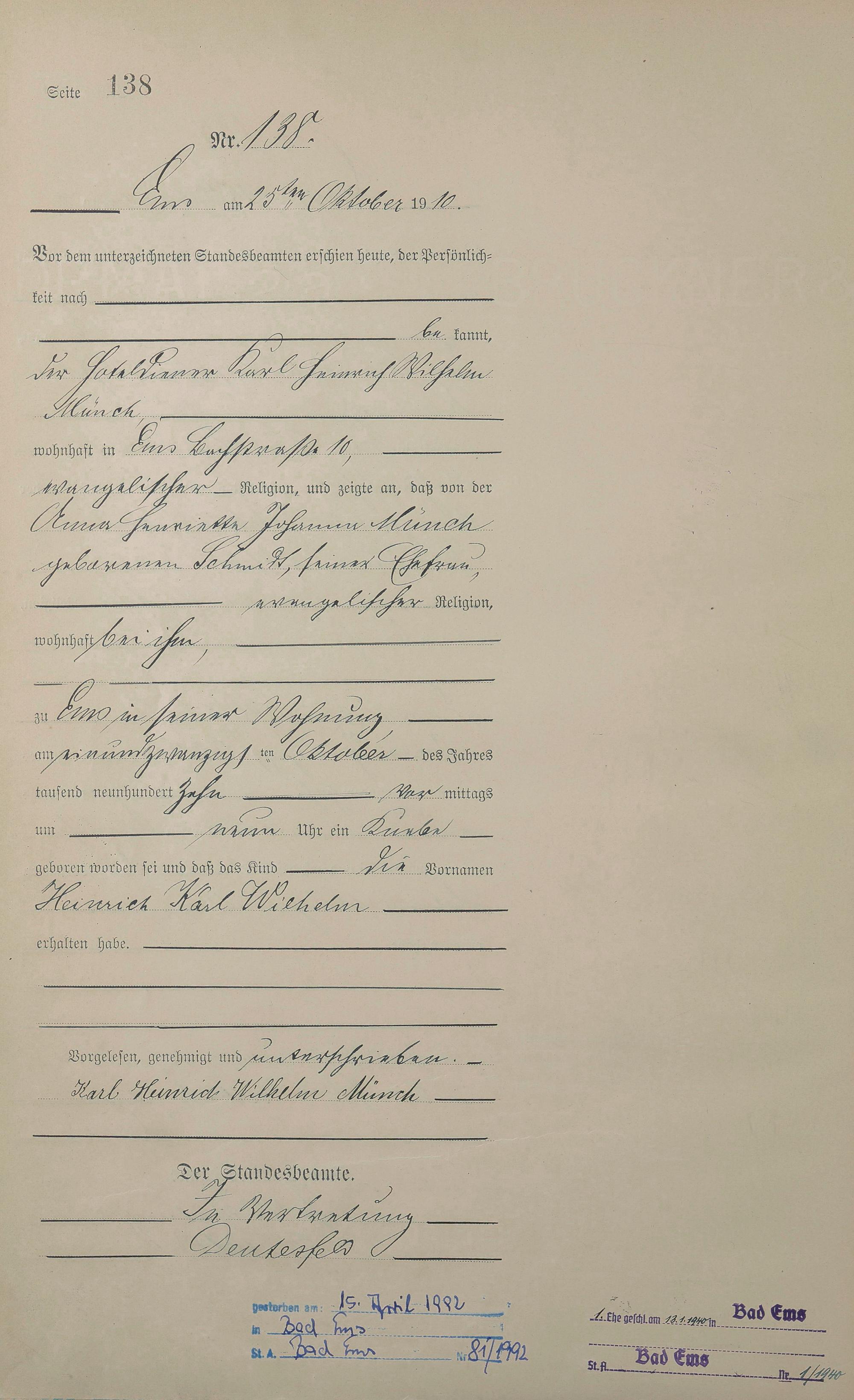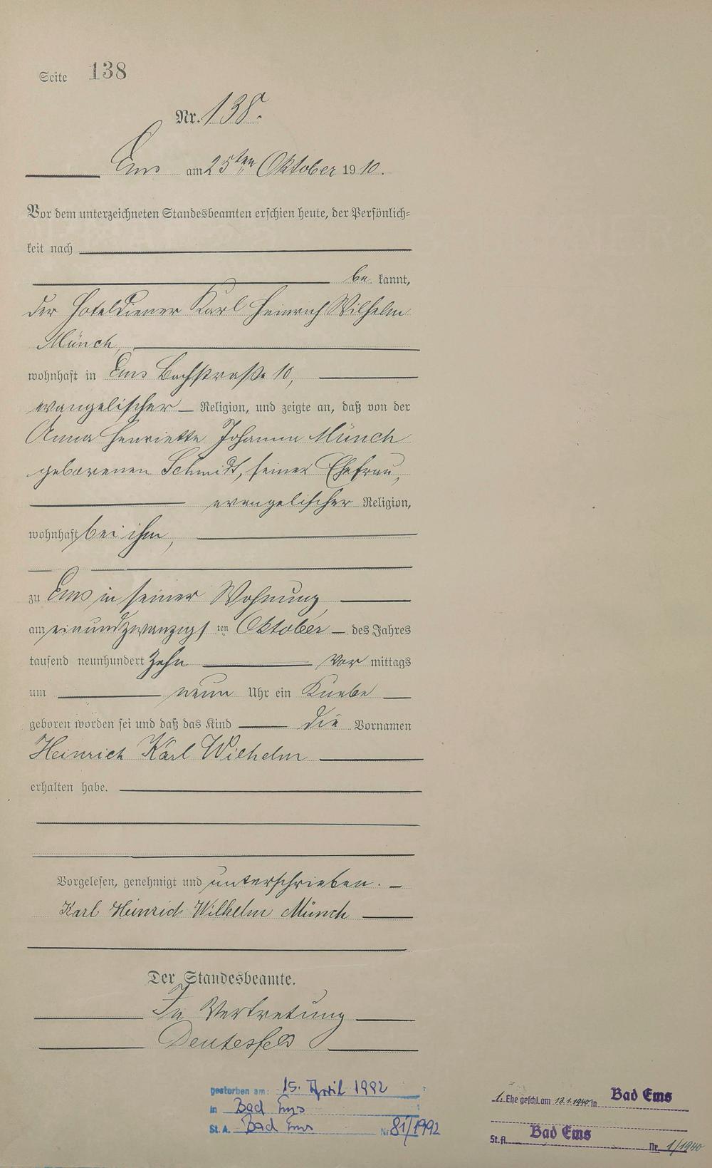 Geburtsregister 1910