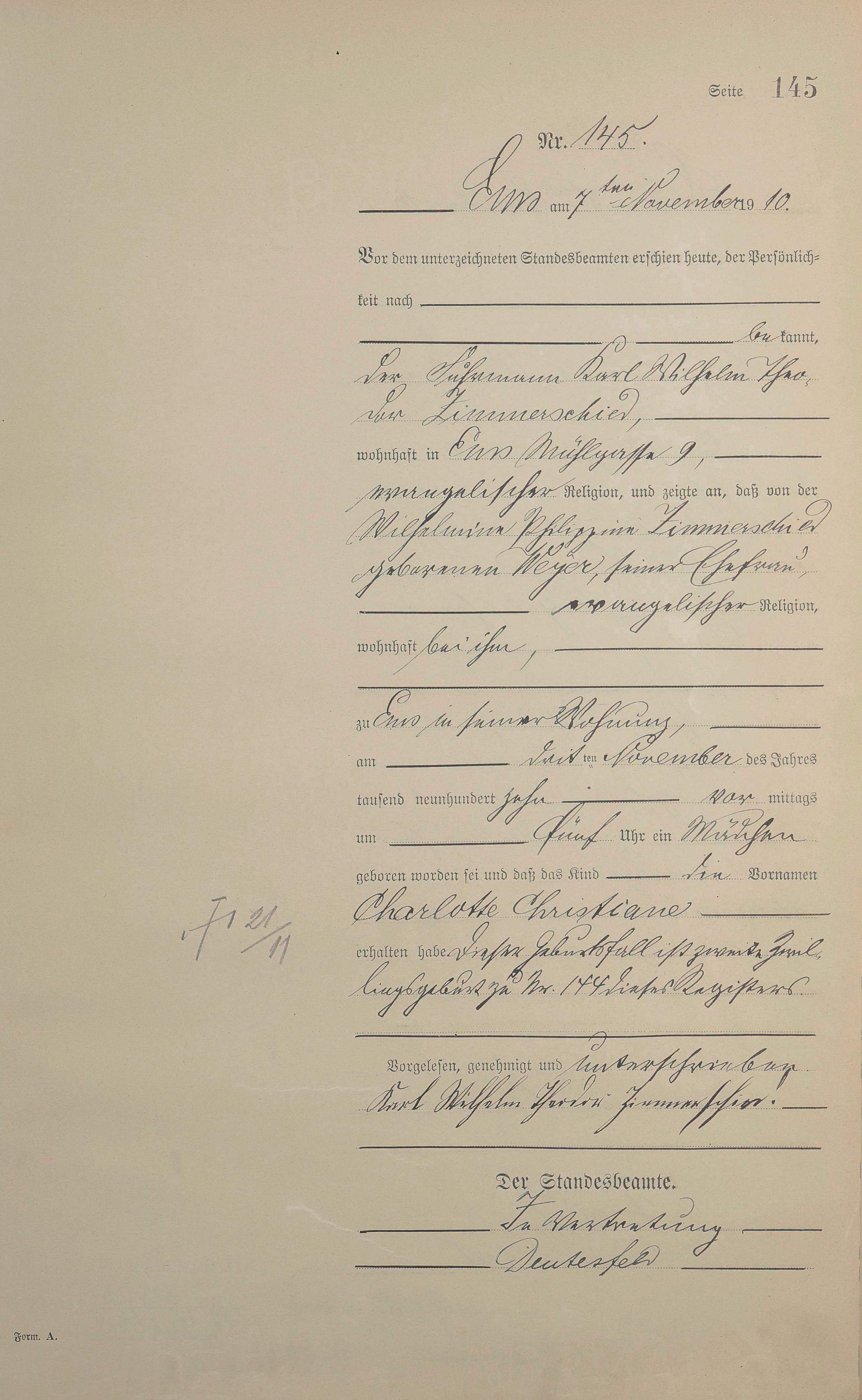 Geburtsregister 1910
