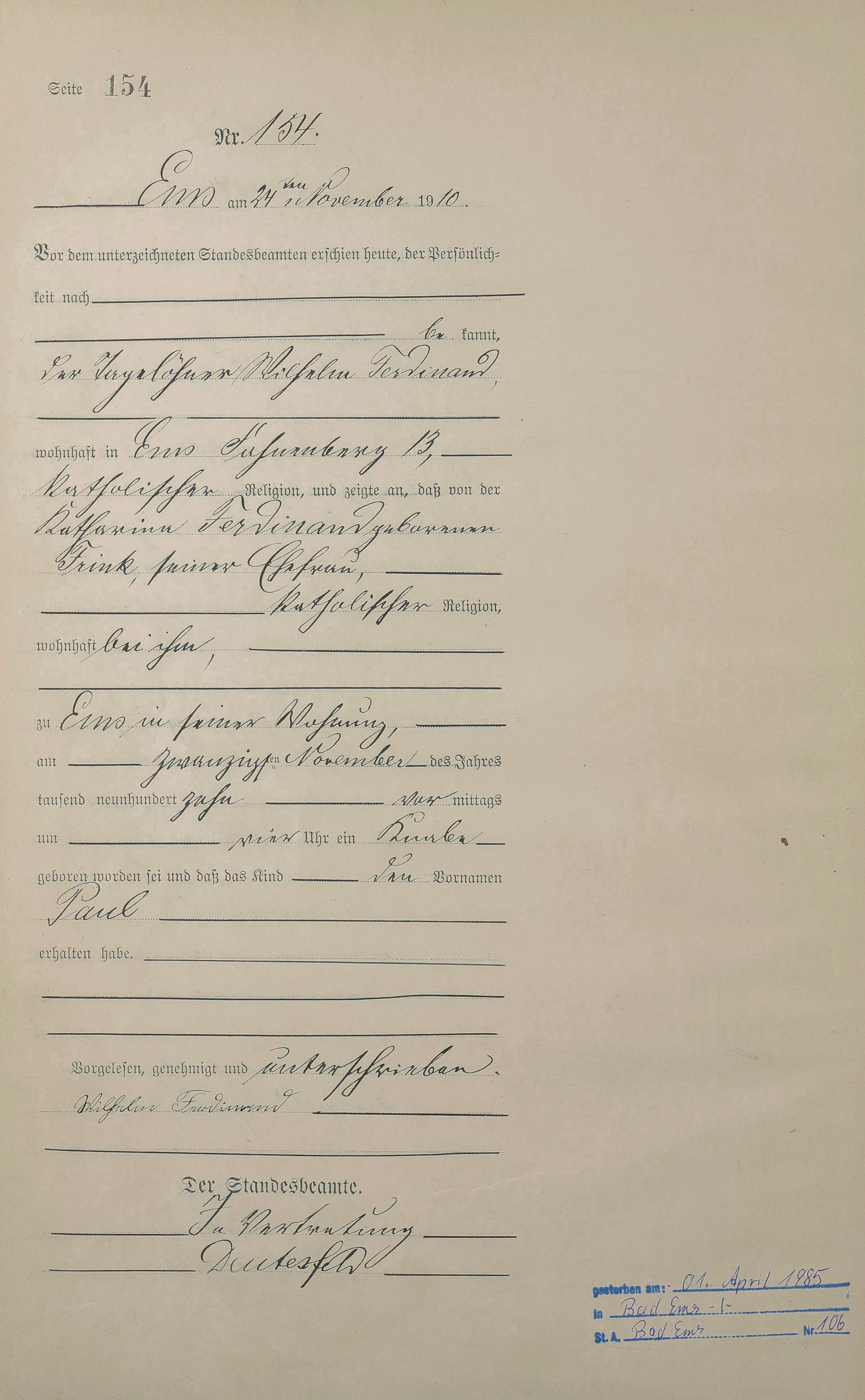 Geburtsregister 1910