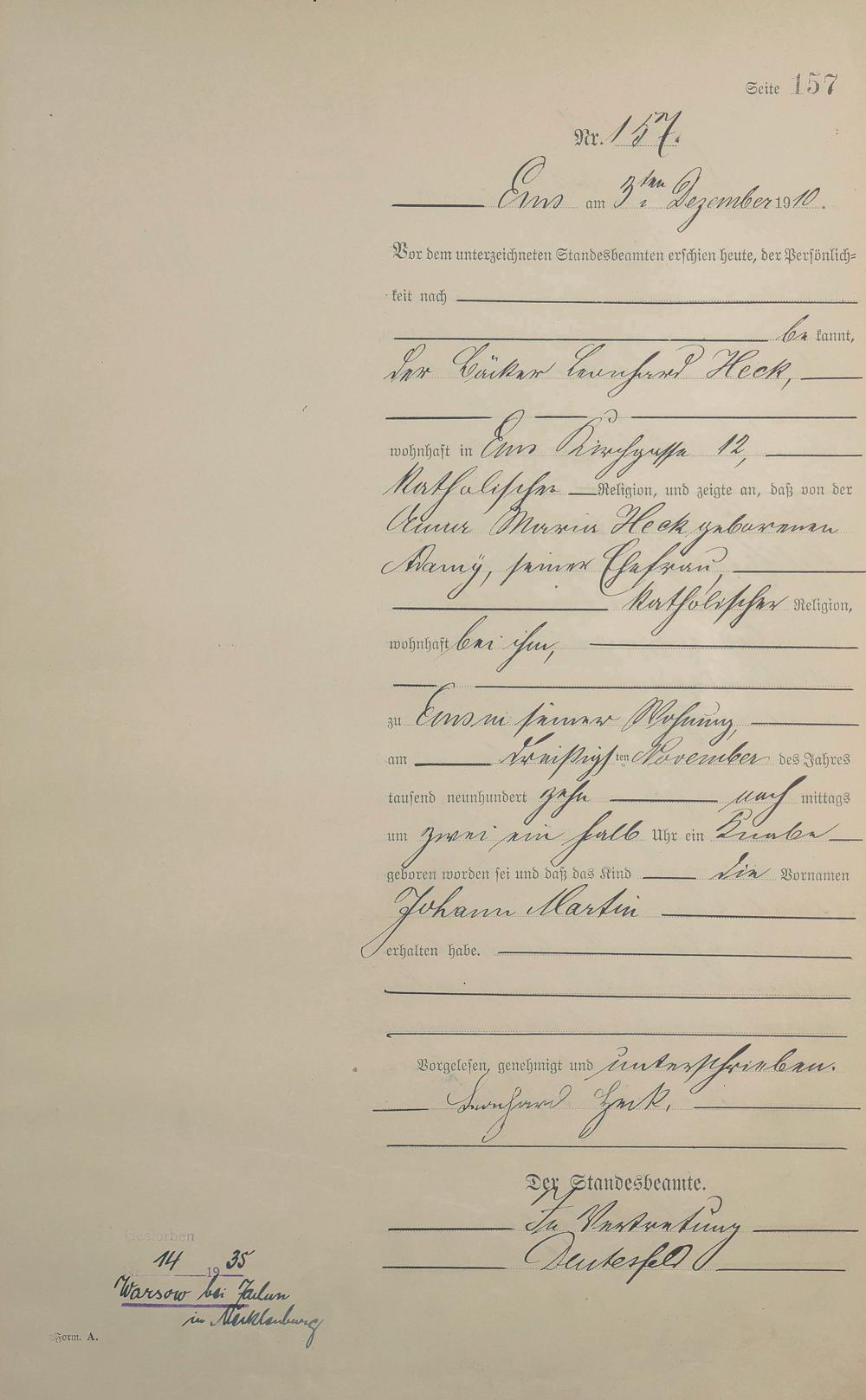 Geburtsregister 1910