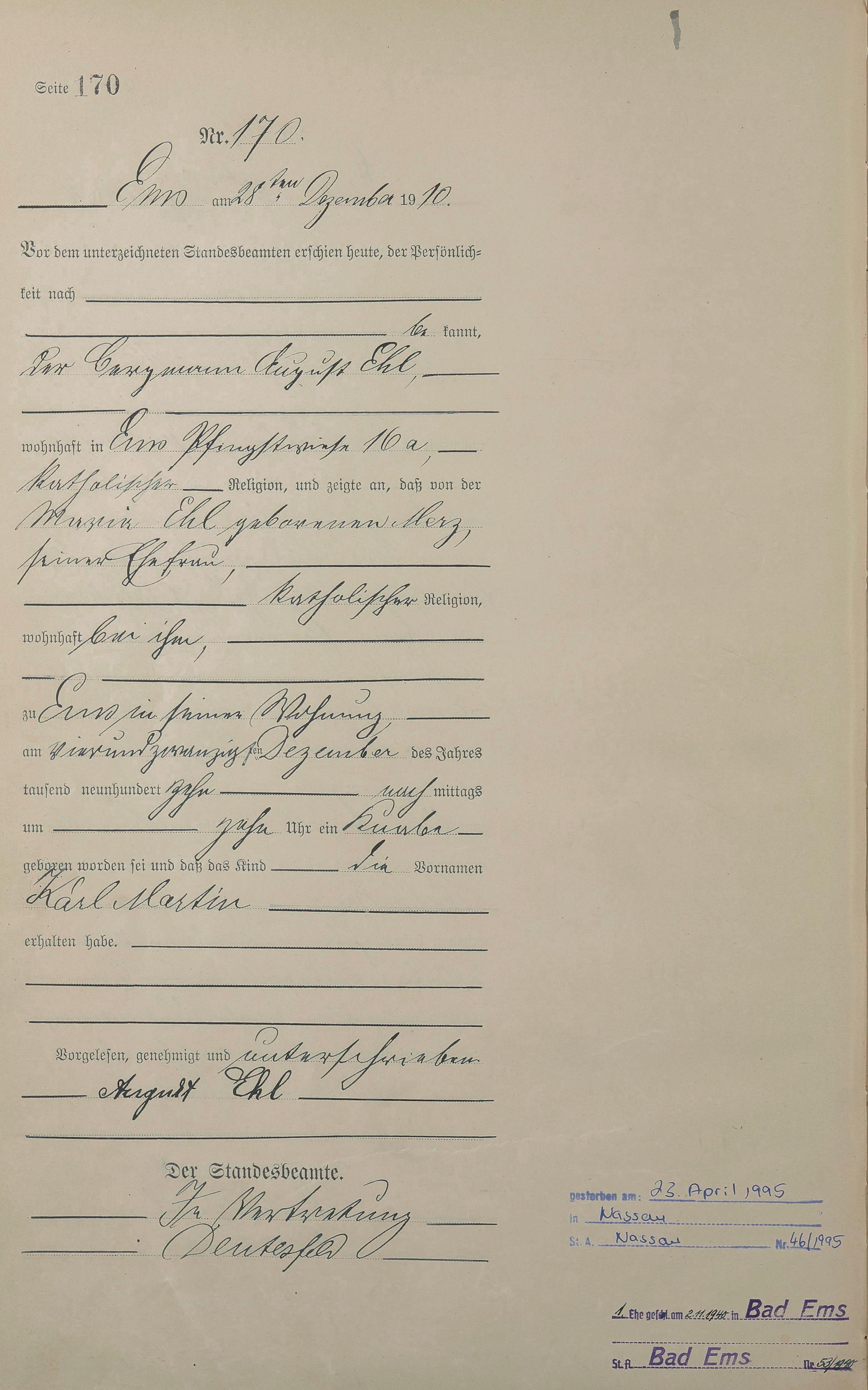 Geburtsregister 1910