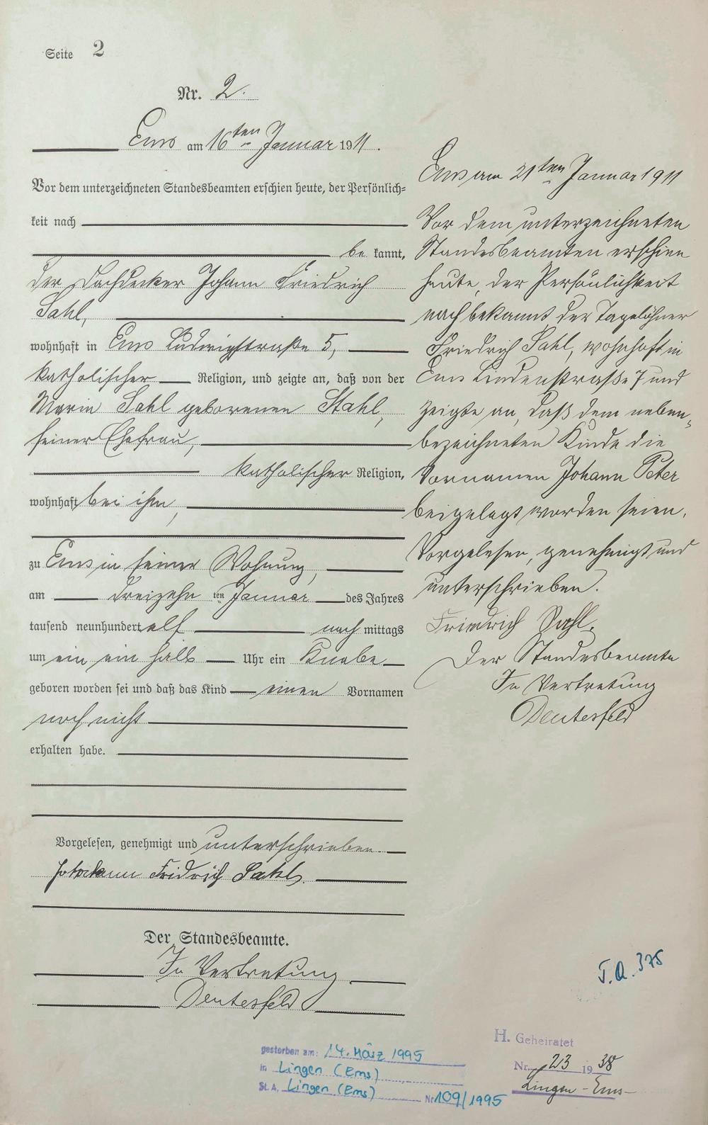 Geburtsregister 1911