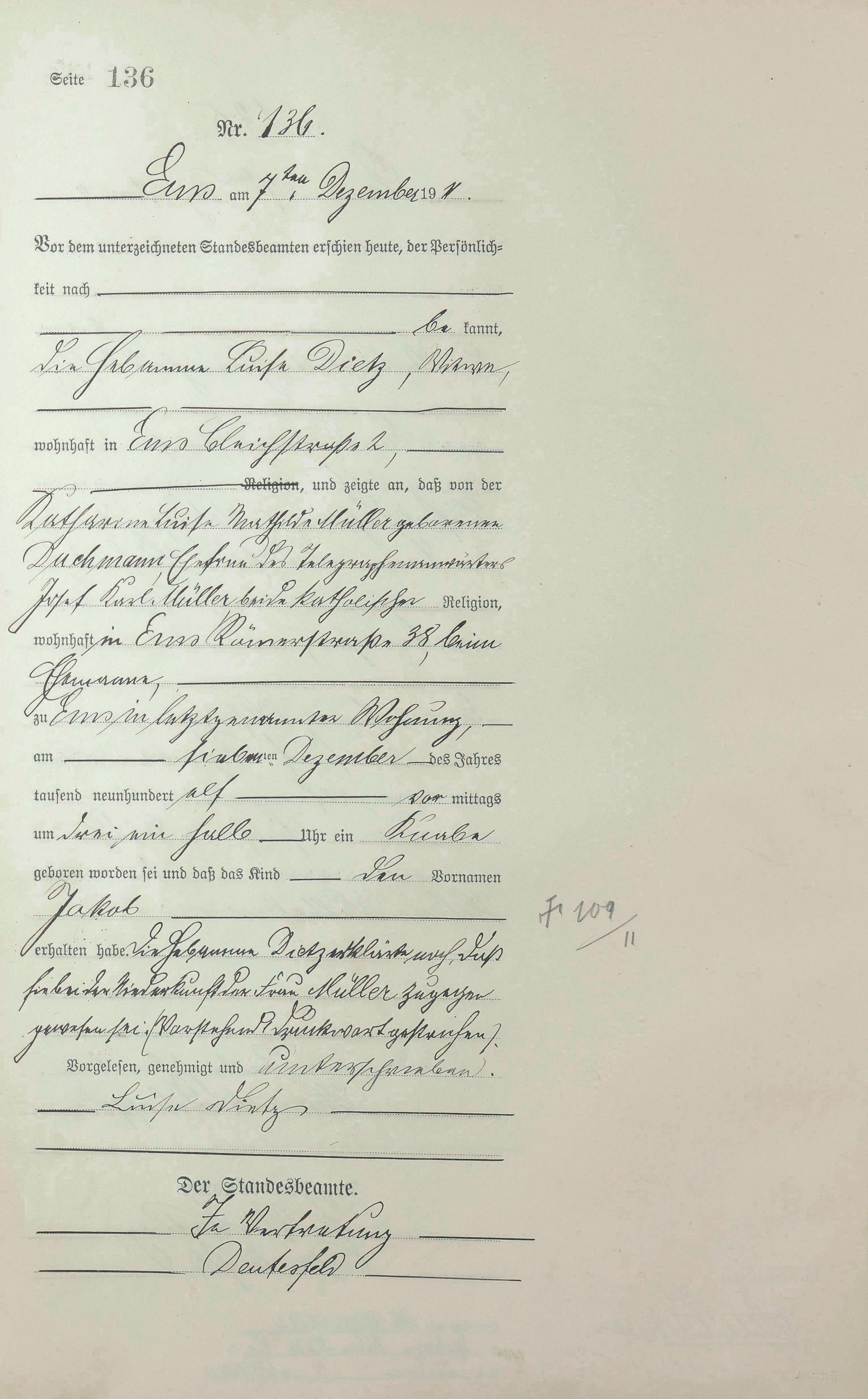Geburtsregister 1911