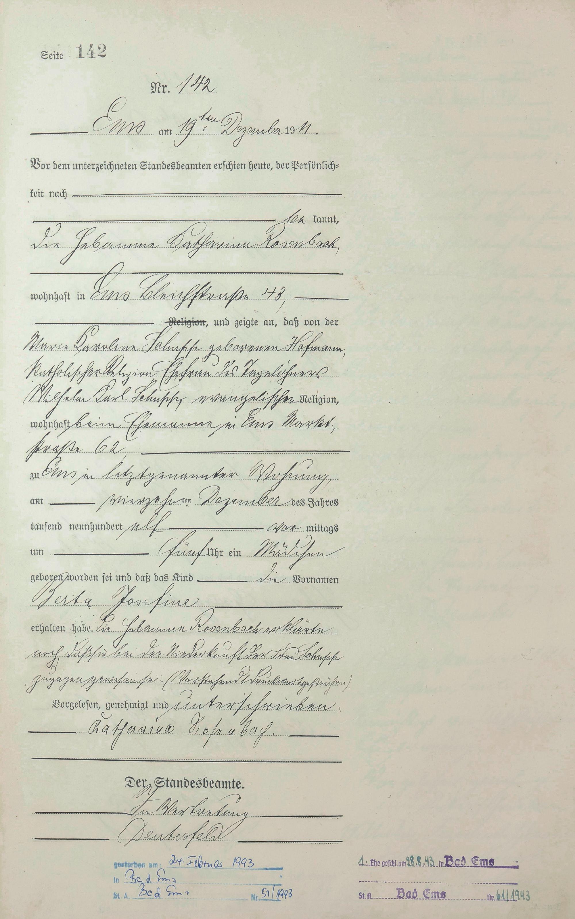Geburtsregister 1911