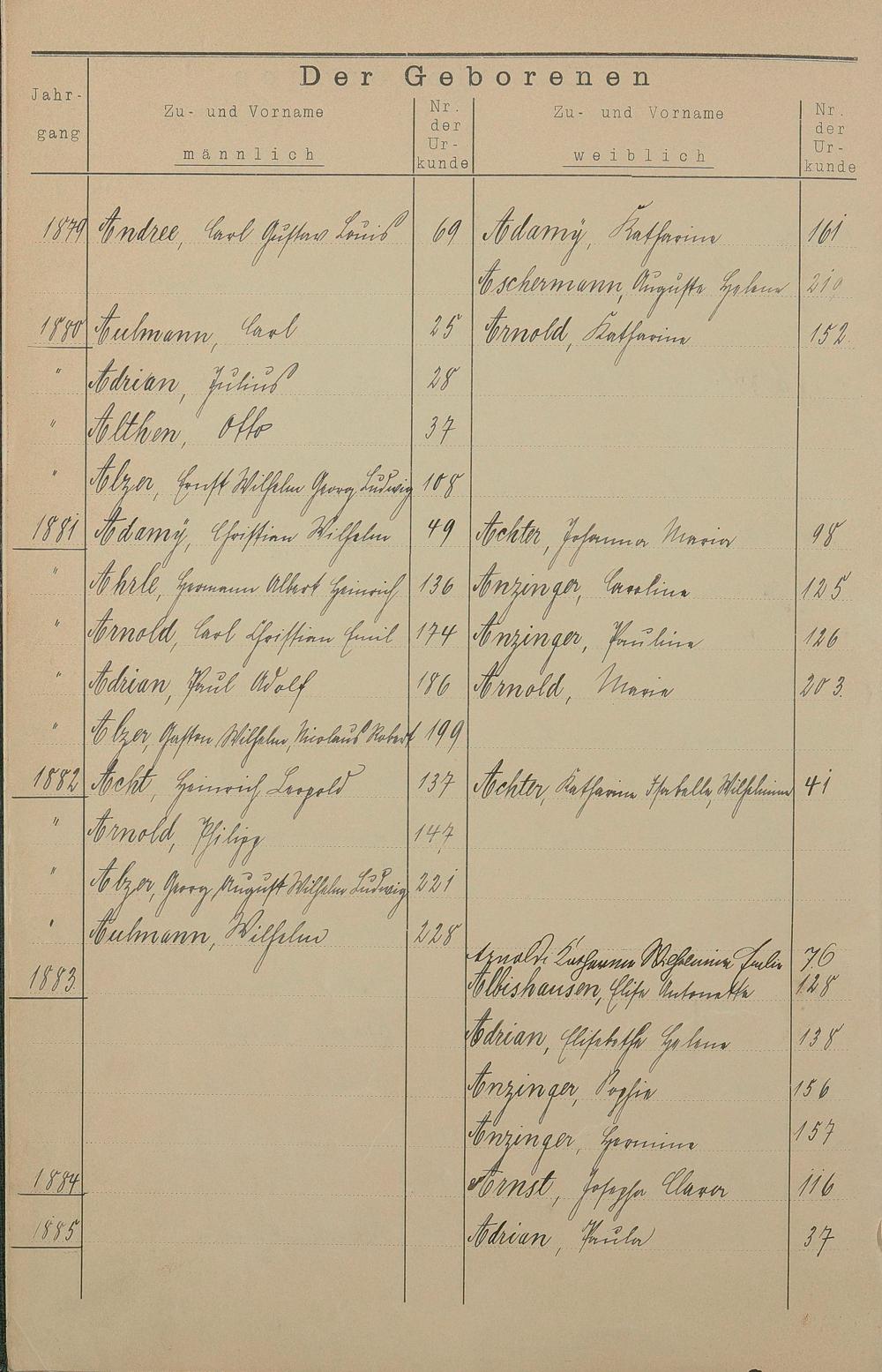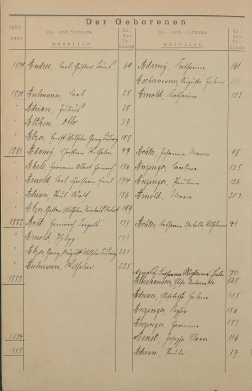 Register A - Z zum Geburtsregister 1874-1900