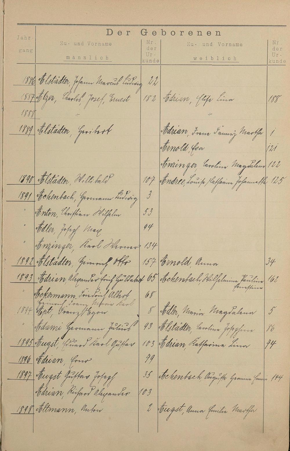 Register A - Z zum Geburtsregister 1874-1900