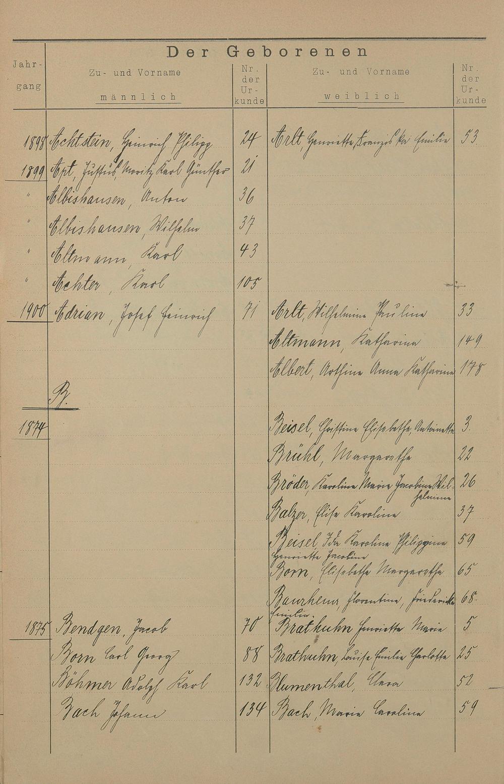 1554: Register A - Z zum Geburtsregister 1874-1900