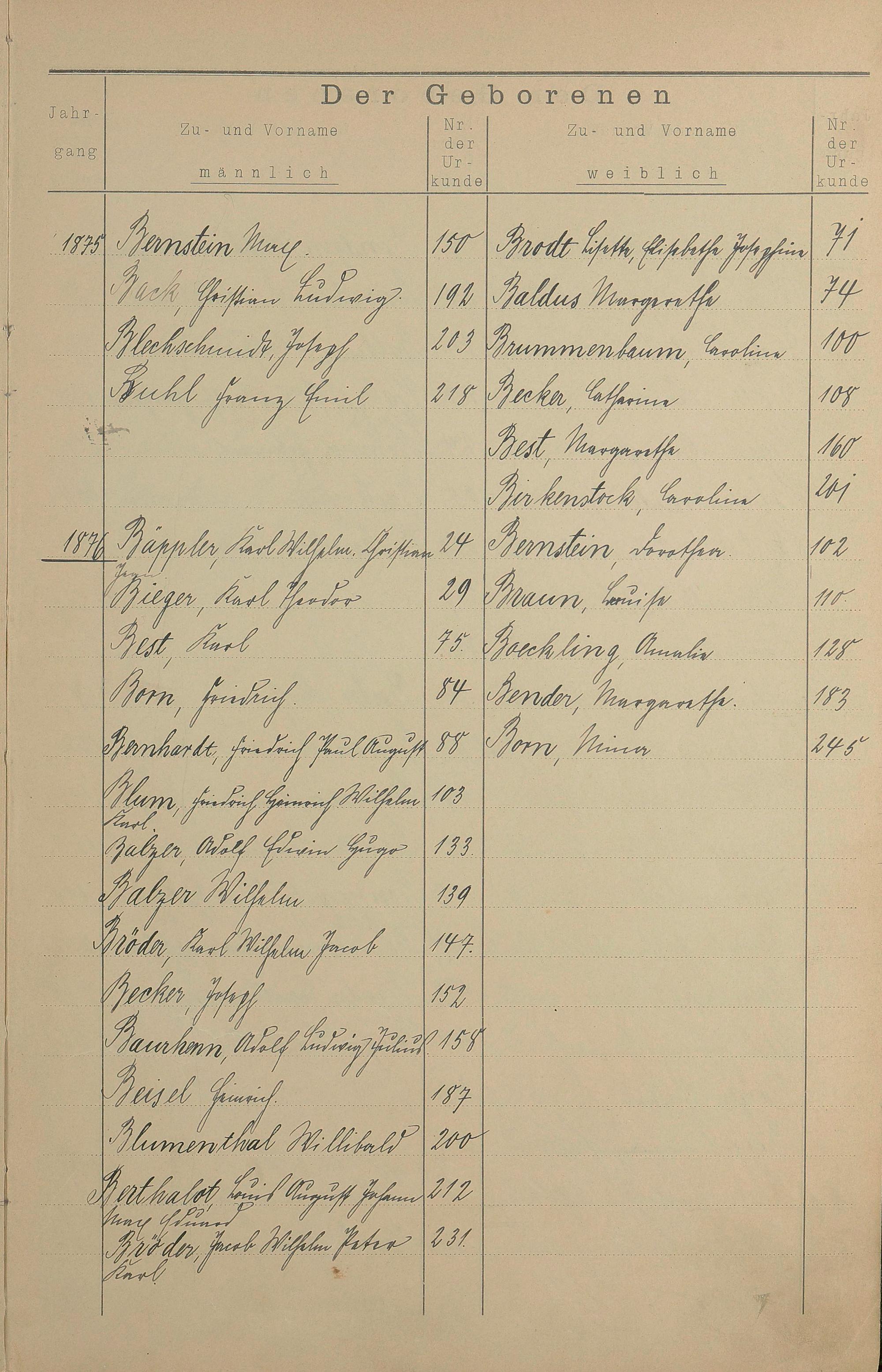1554: Register A - Z zum Geburtsregister 1874-1900