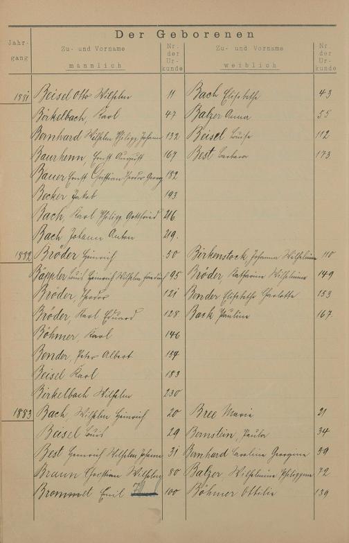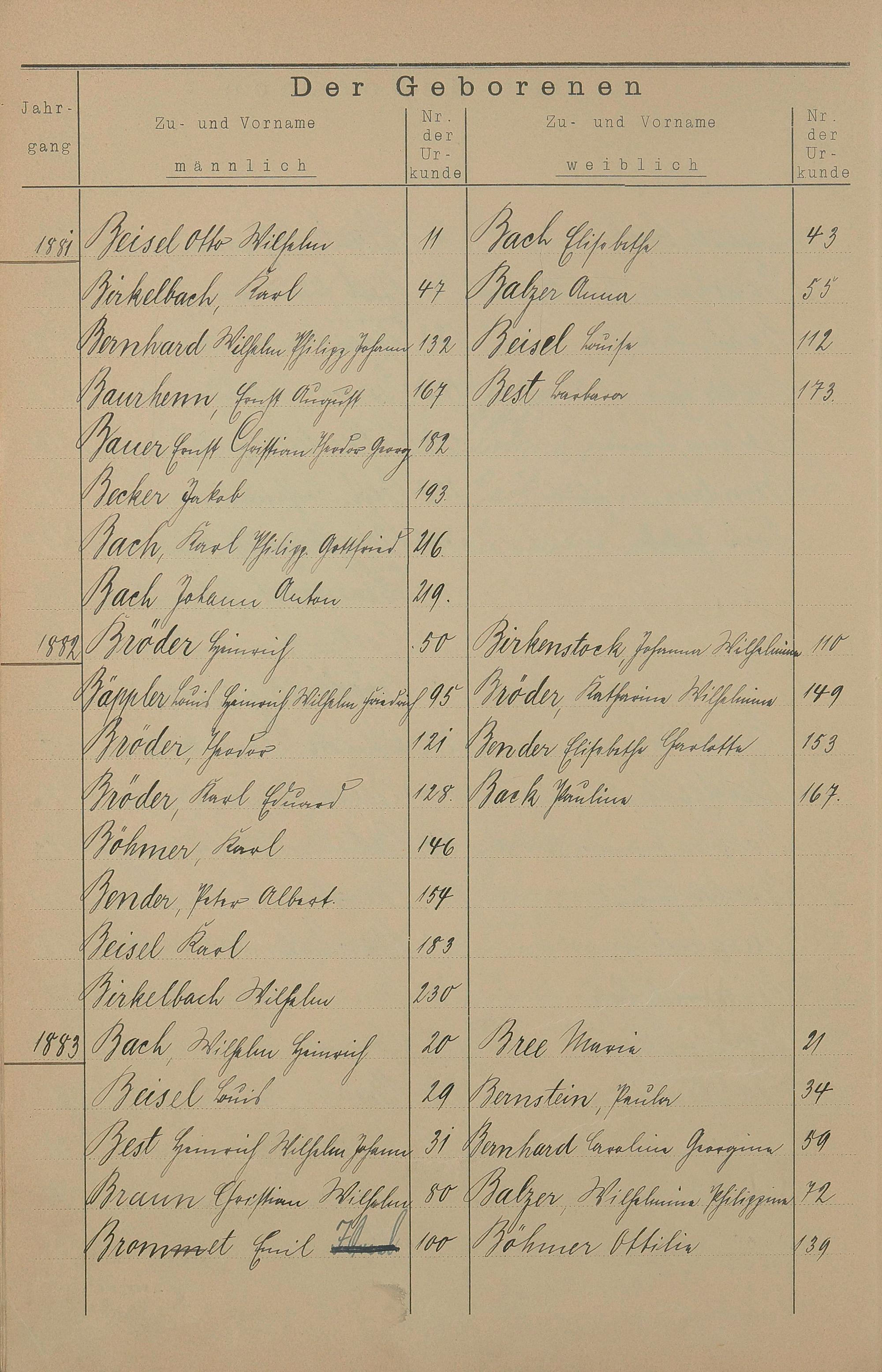 1554: Register A - Z zum Geburtsregister 1874-1900