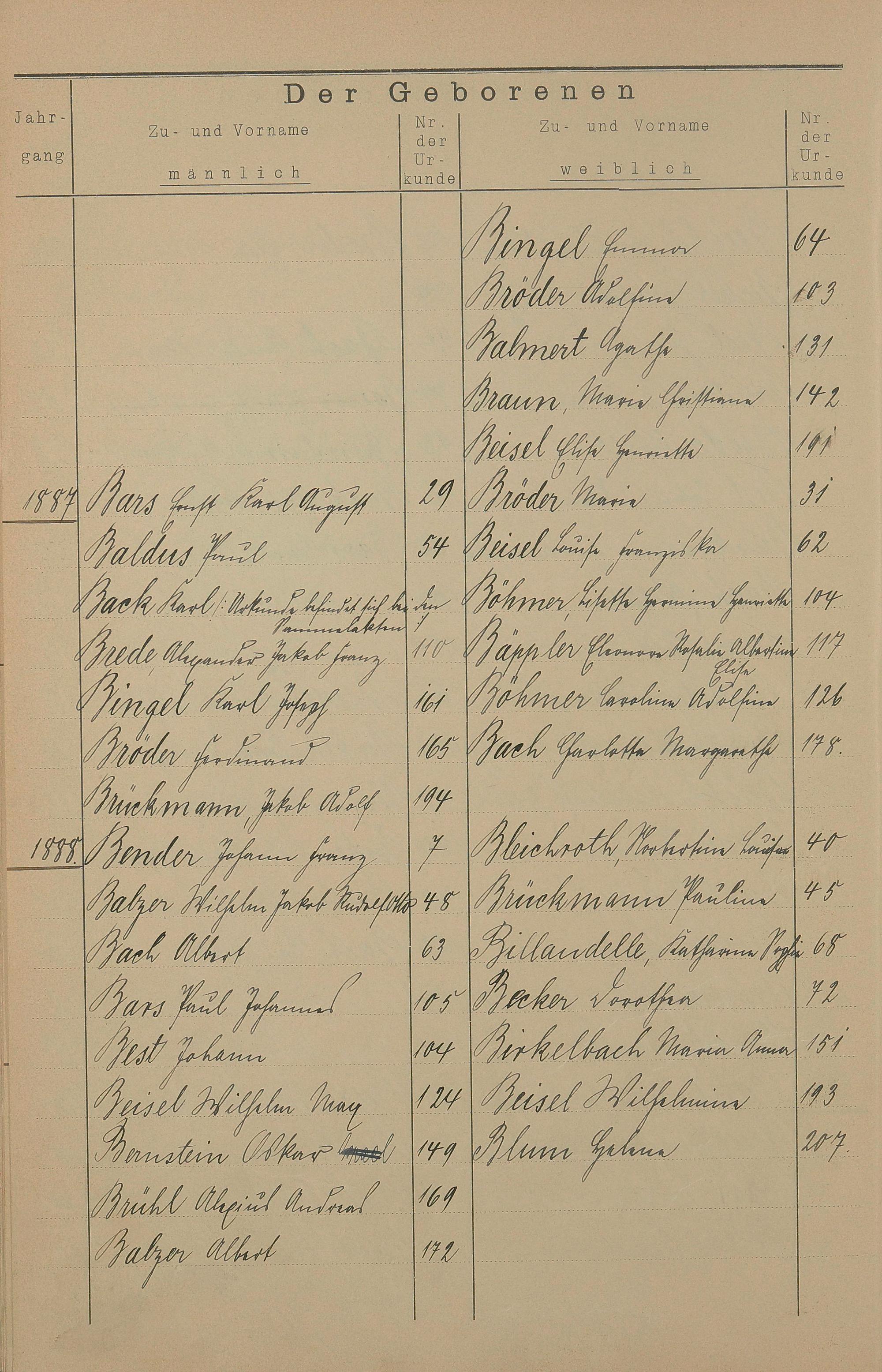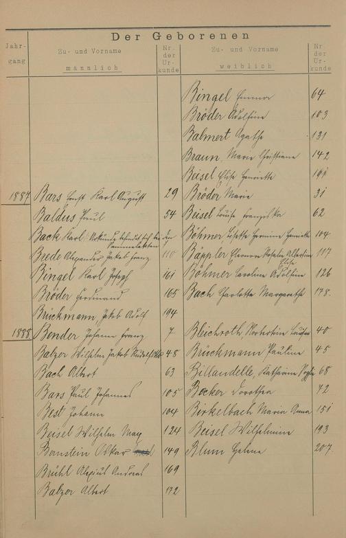Register A - Z zum Geburtsregister 1874-1900
