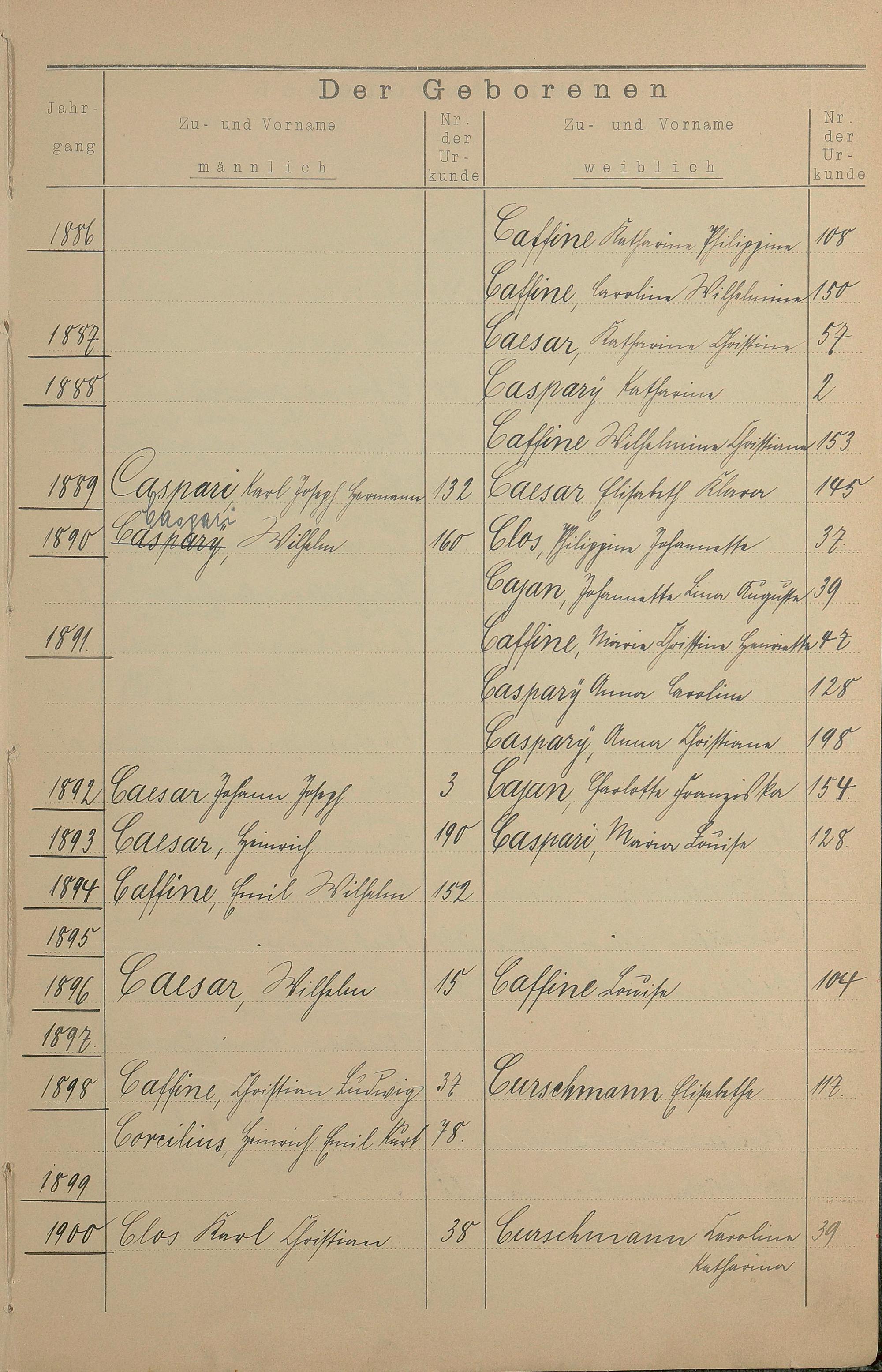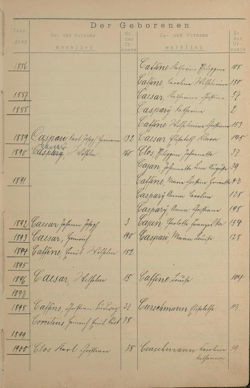 Register A - Z zum Geburtsregister 1874-1900